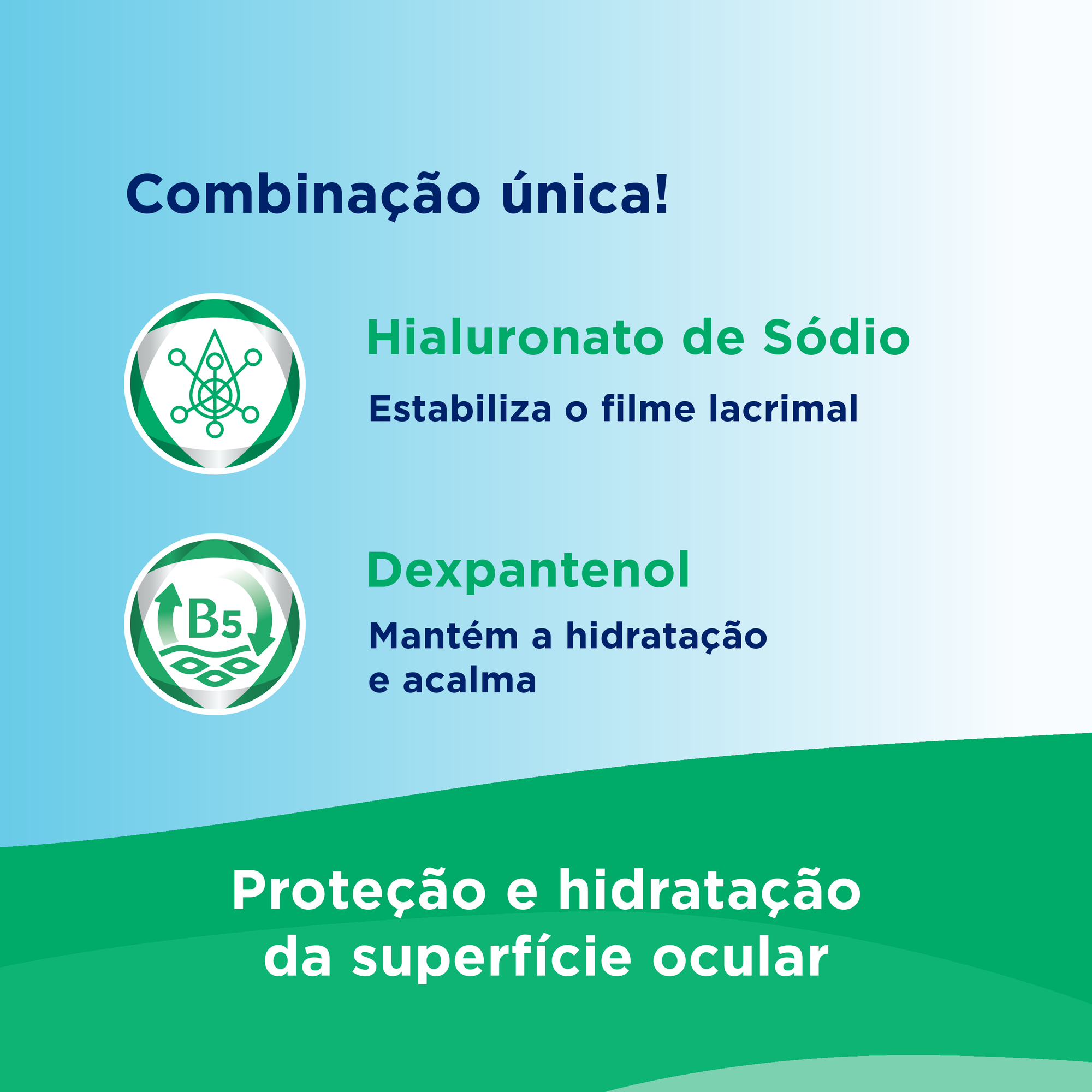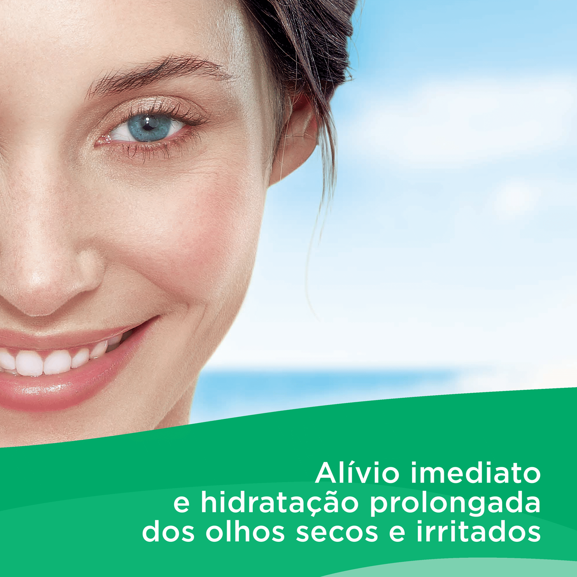 Hidrata e lubrifica a superfície do olho. Alívio prolongado do desconforto associado a stress ambiental, por exemplo induzido por ar condicionado, vento ou ar poluído, nomeadamente, por fumo de cigarro. Stress visual resultante do esforço da vista, por exemplo, ao ecrã do computador, ao microscópio ou durante a condução prolongada de veículos. Dispositivo médico.