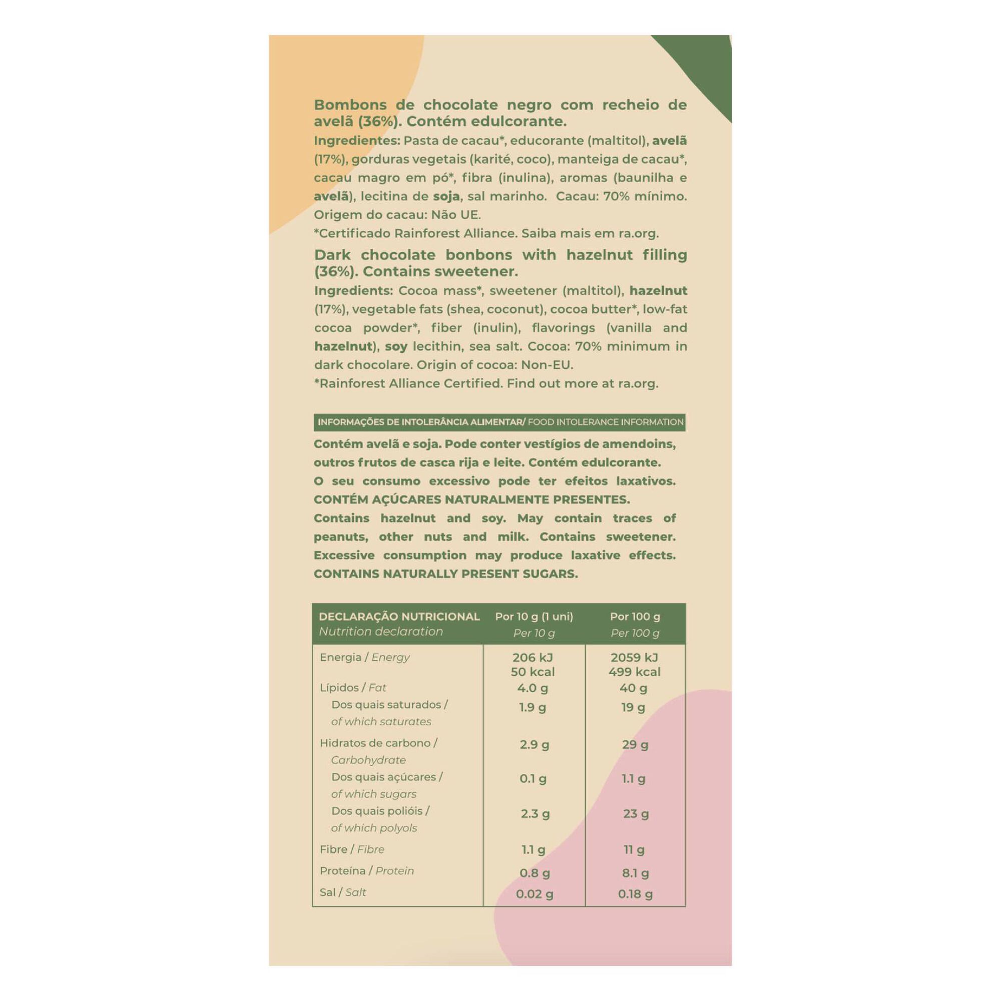 O chocolate aveludado 70% cacau é recheado com um delicioso creme de avelã, numa combinação mágica.