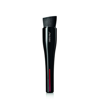 Um pincel angular único com uma superfície plana que garante uma adesão superior e uma distribuição uniforme do produto no rosto.