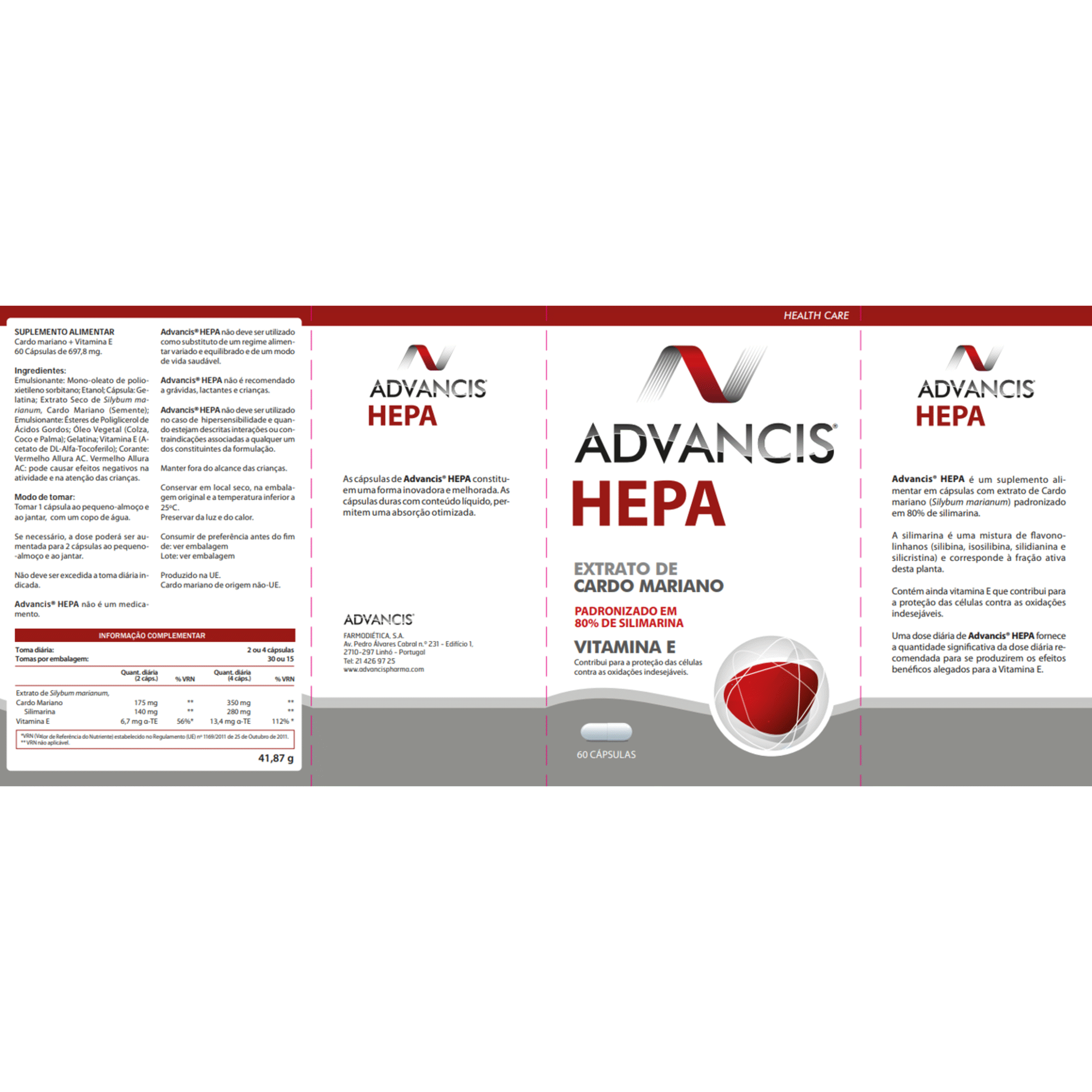 ADVANCIS® HEPA é um suplemento alimentar otimizado em cápsulas com um extrato de cardo mariano (Silybum marianum (L.) Gaertn.) com 80% de silimarina.