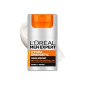 Creme hidratante e energizante para homem L'Oréal Men Expert Hydra Energetic, de uso diário para uma hidratação ideal durante 24 horas e um efeito antifadiga. Hidrata intensamente a pele e deixa-a cheia de energia, como depois de um bom descanso. Pensada para peles com aspeto cansado.