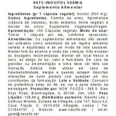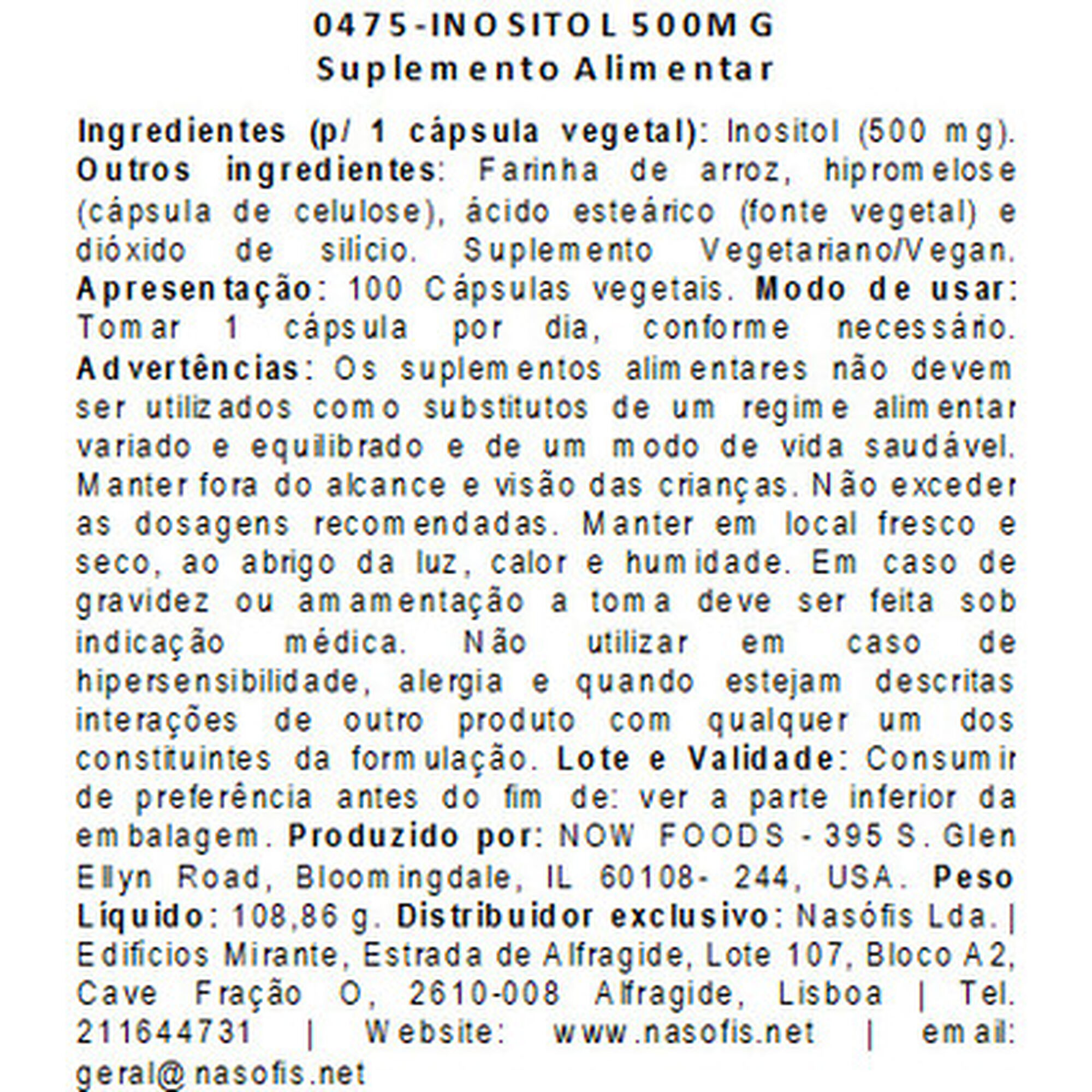 Inositol 500 mg da NOW é um suplemento alimentar de Mio-Inositol, um composto naturalmente produzido no organismo, estudado em diferentes áreas fisiopatológicas mas com maior ênfase em perturbações neurológicas, podendo ser útil na manutenção de níveis adequados de Serotonina e Acetilcolina, evitando dificuldades cognitivas ou perturbações de humor.