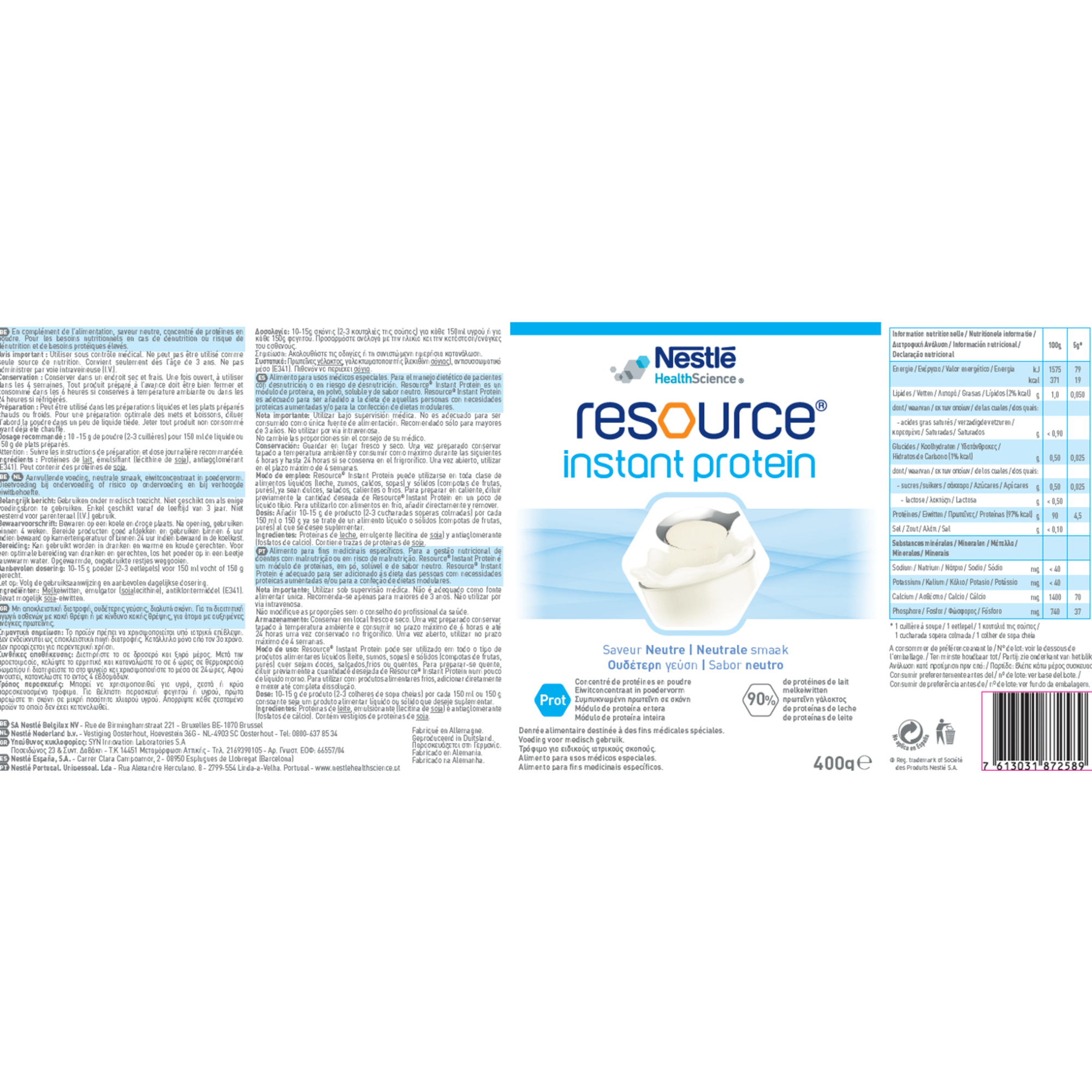 Resource Instant Protein Pó 400g foi concebido para aumentar o aporte proteico na dieta dos pacientes com necessidades proteicas aumentadas, sem alterar o sabor das refeições nem o nível de saciedade.