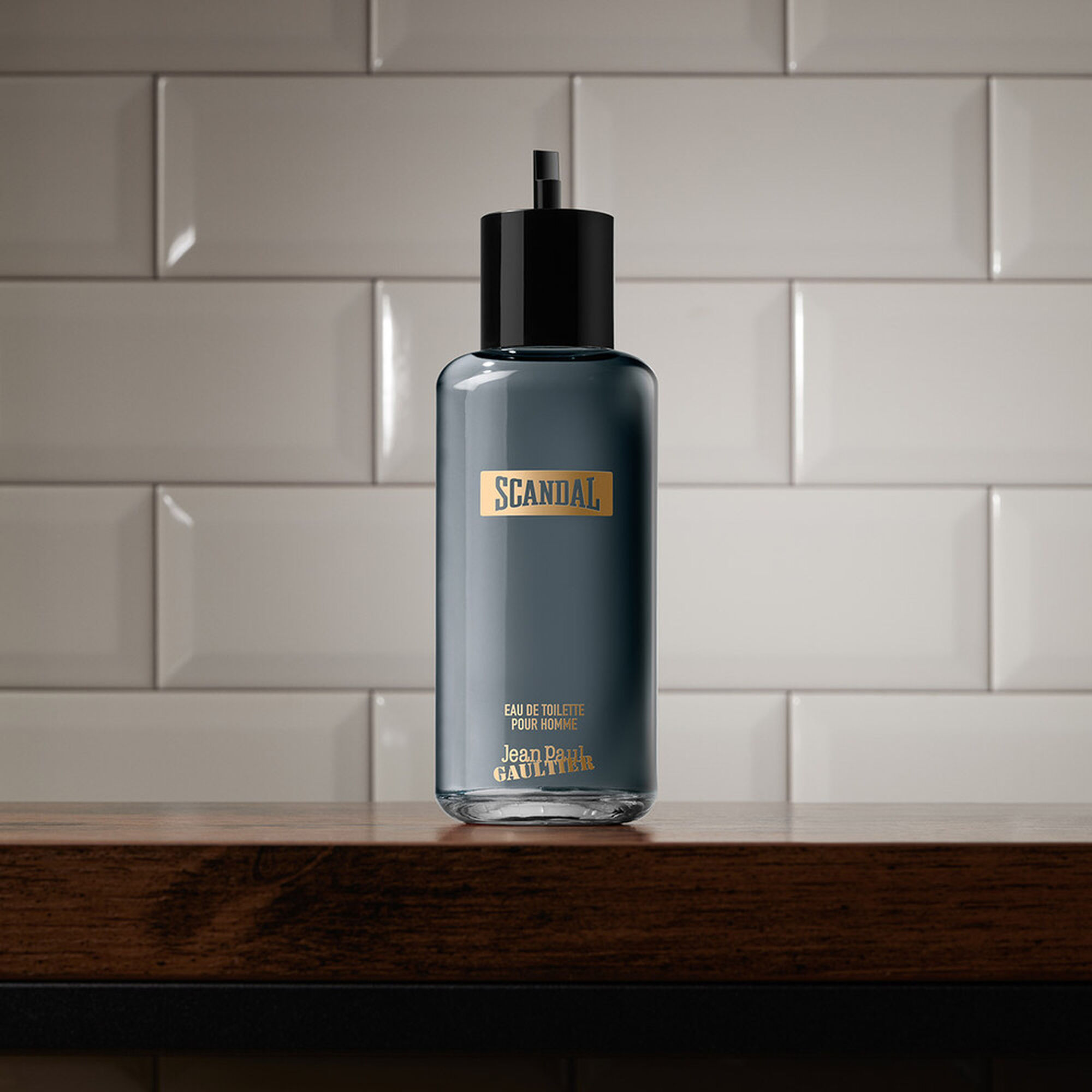 O novo SCANDAL POUR HOMME de Jean Paul Gaultier faz uma entrada espetacular com o golpe certeiro desta sensual eau de toilette masculina, energizante e extremamente viciante. Dominando os sentidos e coroado de vitórias, este rei dos ringues seduz os fãs com brilho, deixando no seu rasto a virilidade contrastante de um amadeirado oriental intenso, num frasco recarregável.