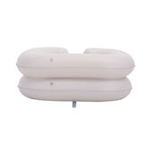 Ideal para lavar a cabeça de uma pessoa acamada. Facilmente insuflável. Com abertura para encaixe no pescoço. Fabricado em PP com as dimensões 64 x 58 x 20cm.