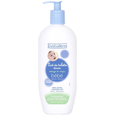 O leite de limpeza para bebé Lait de Toilette da Evoluderm é hipoalergénico e especialmente formulado para atender às necessidades da pele frágil dos bebés.