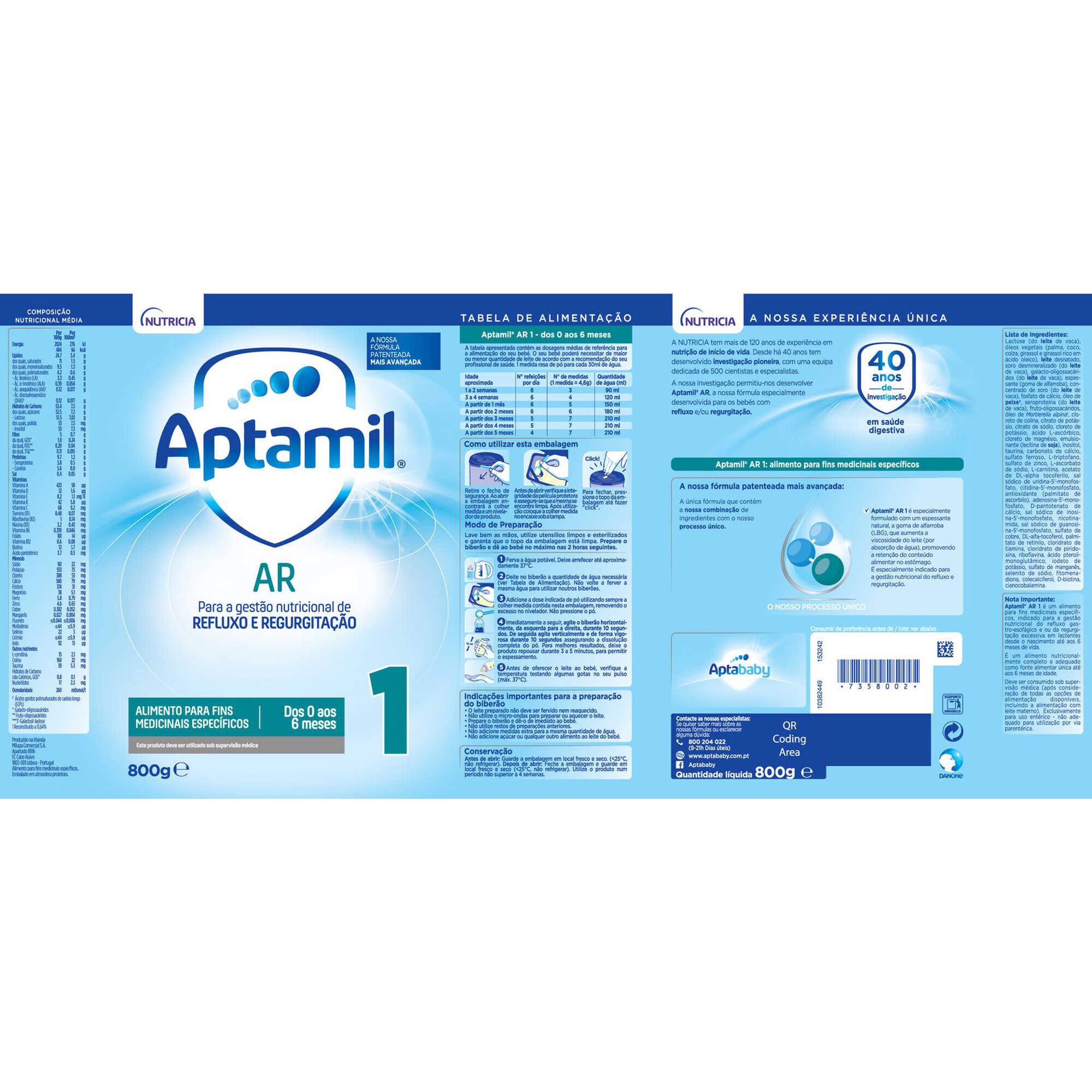 Lave bem as mãos; Esterilize o biberão, a tetina e o fixador da tetina em água fervente durante 5 minutos; Ferva a água e deixe arrefecer até cerca de 45ºC. Deite a quantidade adequada no biberão; Junte medida recomendada de Aptamil 1 Leite Lactentes na tabela de dosagem; Tape o biberão e agite até completa dissolução do pó;