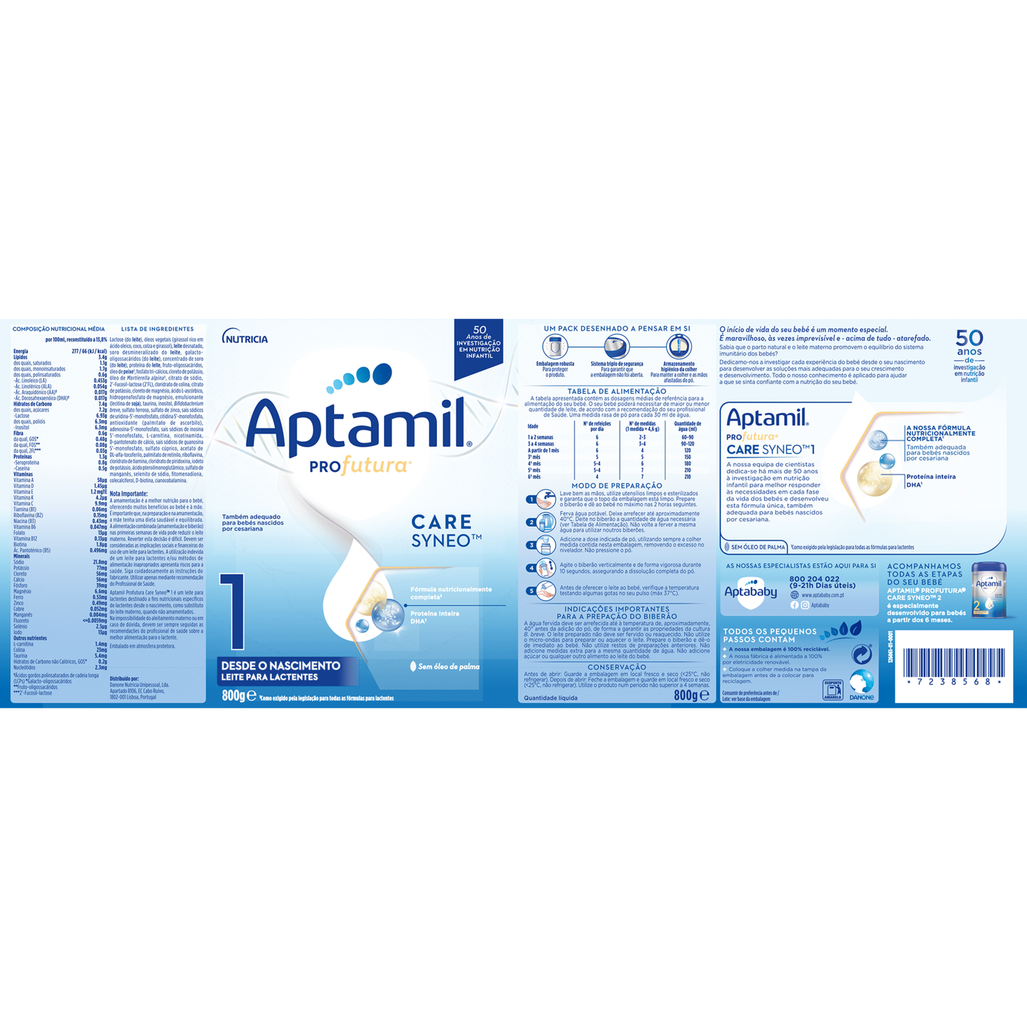 O Leite Aptamil Profutura Care 1 é um leite para lactentes destinado a fins nutricionais específicos de lactentes desde o nascimento, como substituto do leite materno, quando não amamentados exclusivamente.