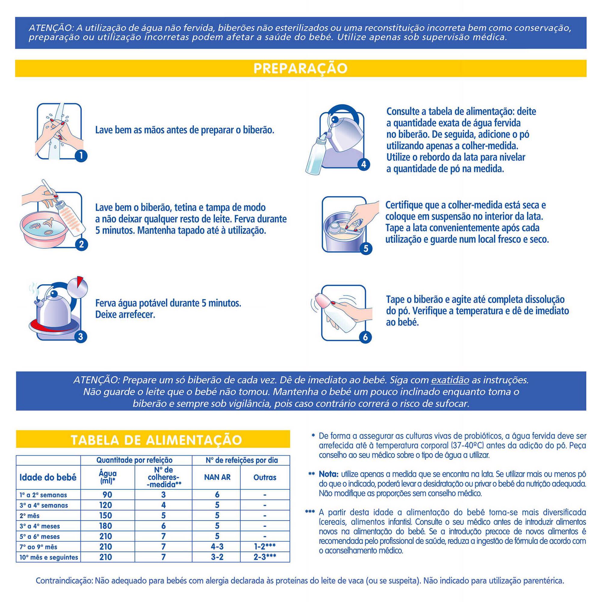 Lactose, óleos vegetais (girassol, coco, colza), amido de batata, proteínas do soro de leite hidrolisadas enzimaticamente, substâncias minerais (fosfato de cálcio, cloreto de magnésio, cloreto de potássio, cloreto de sódio, fosfato de potássio, sulfato ferroso, sulfato de zinco, sulfato cúprico, sulfato de manganês, iodeto de potássio, selenato de sódio), L-arginina, vitaminas (C, E, A, PP, ácido pantoténico, D, B1, B2, B6, K, ácido fólico, B12, biotina), L-histidina, bitartrato de colina, L-tirosina, taurina, inositol, nucleótidos, L-carnitina, cultura de Lactobacillus reuteri (DSM 179381).