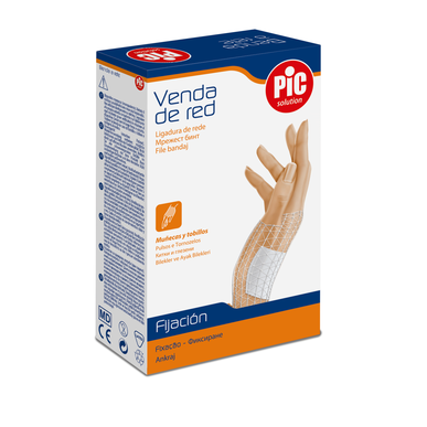 Bandas elástica de rede para fixação de medicação ou pensos em zonas articulares ou de difícil fixação. Adaptável a diferentes zonas do corpo, é totalmente conformável e permite uma total liberdade de movimentos. Dispositivo Médico.