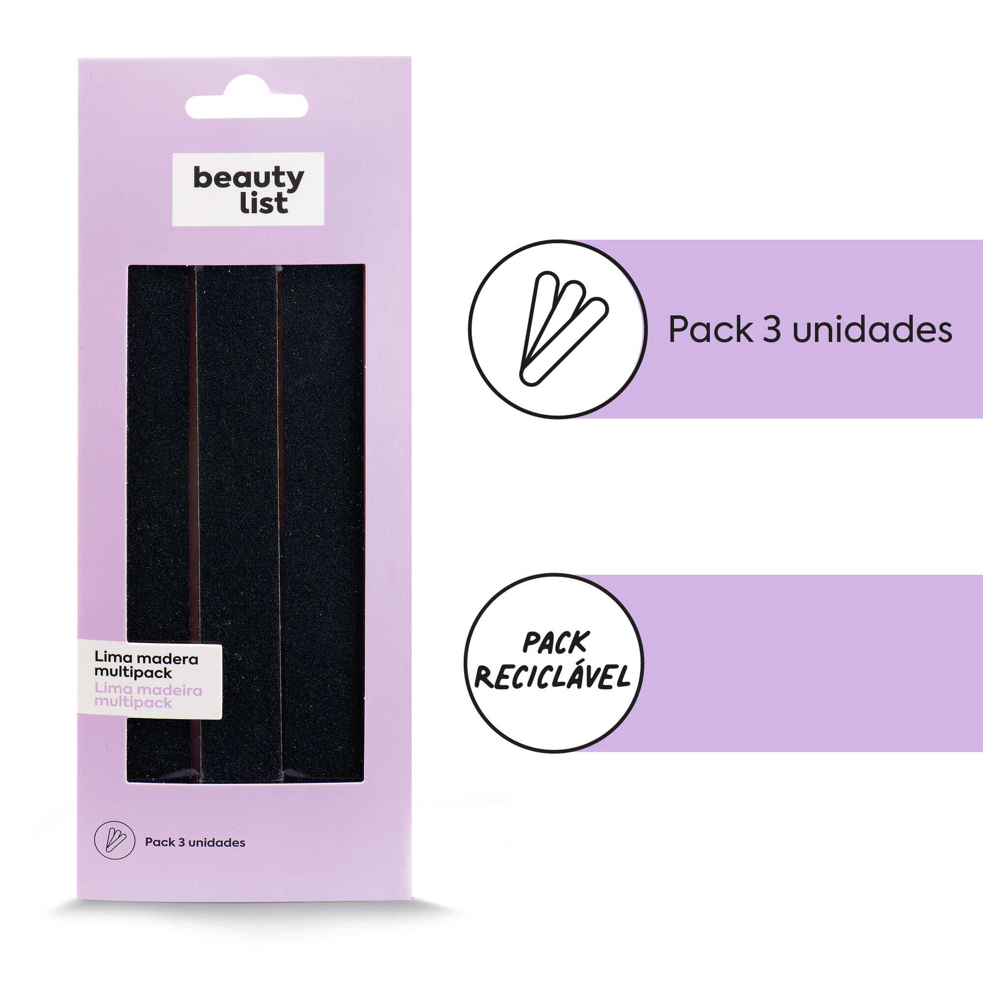 Kit de 3 limas em madeira flexível. Aptas também para unhas frágeis.