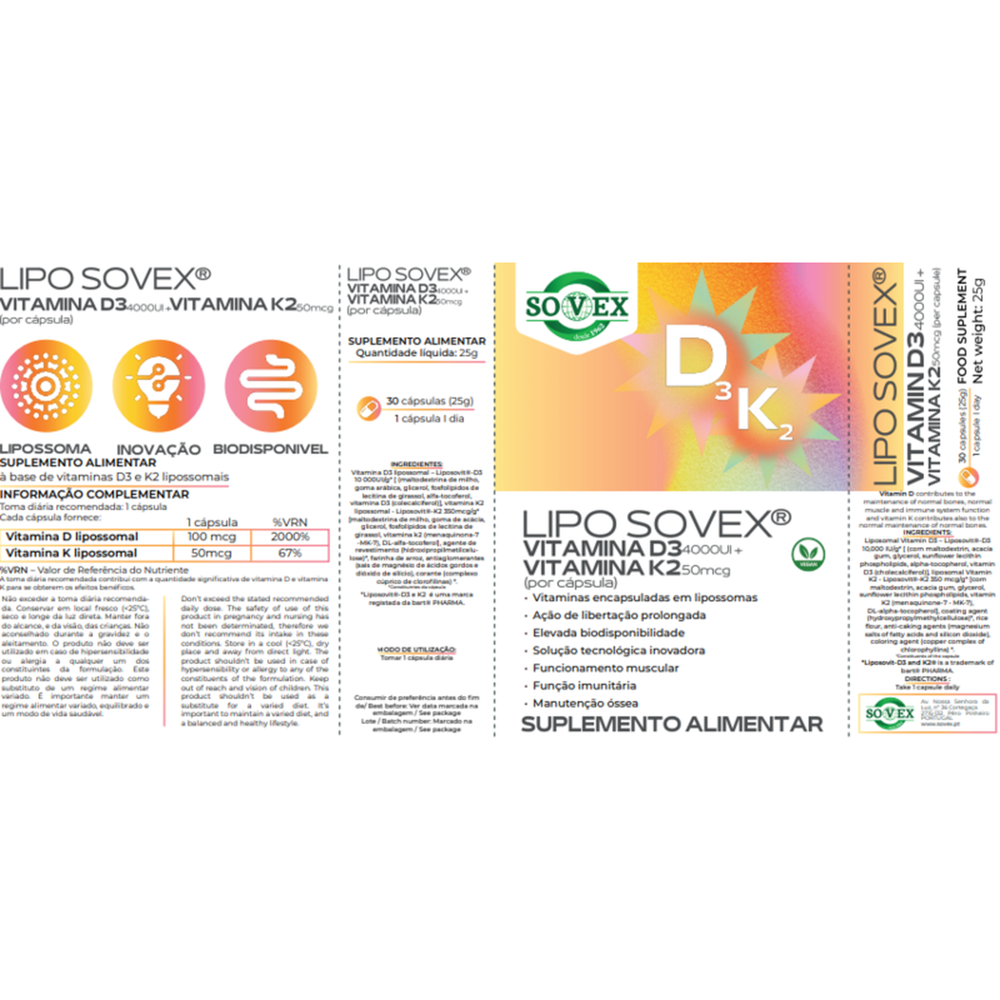 Suplemento alimentar à base das vitaminas D3 e K2 Lipossomais.