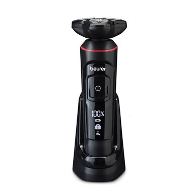 Este aparelho conta com uma cabeça de corte tripla flexível a 360°, com fixação magnética que facilita a remoção. Inclui função de bloqueio de viagem e um display LED que indica o nível da bateria, o bloqueio de viagem, o estado de carregamento e a necessidade de manutenção.