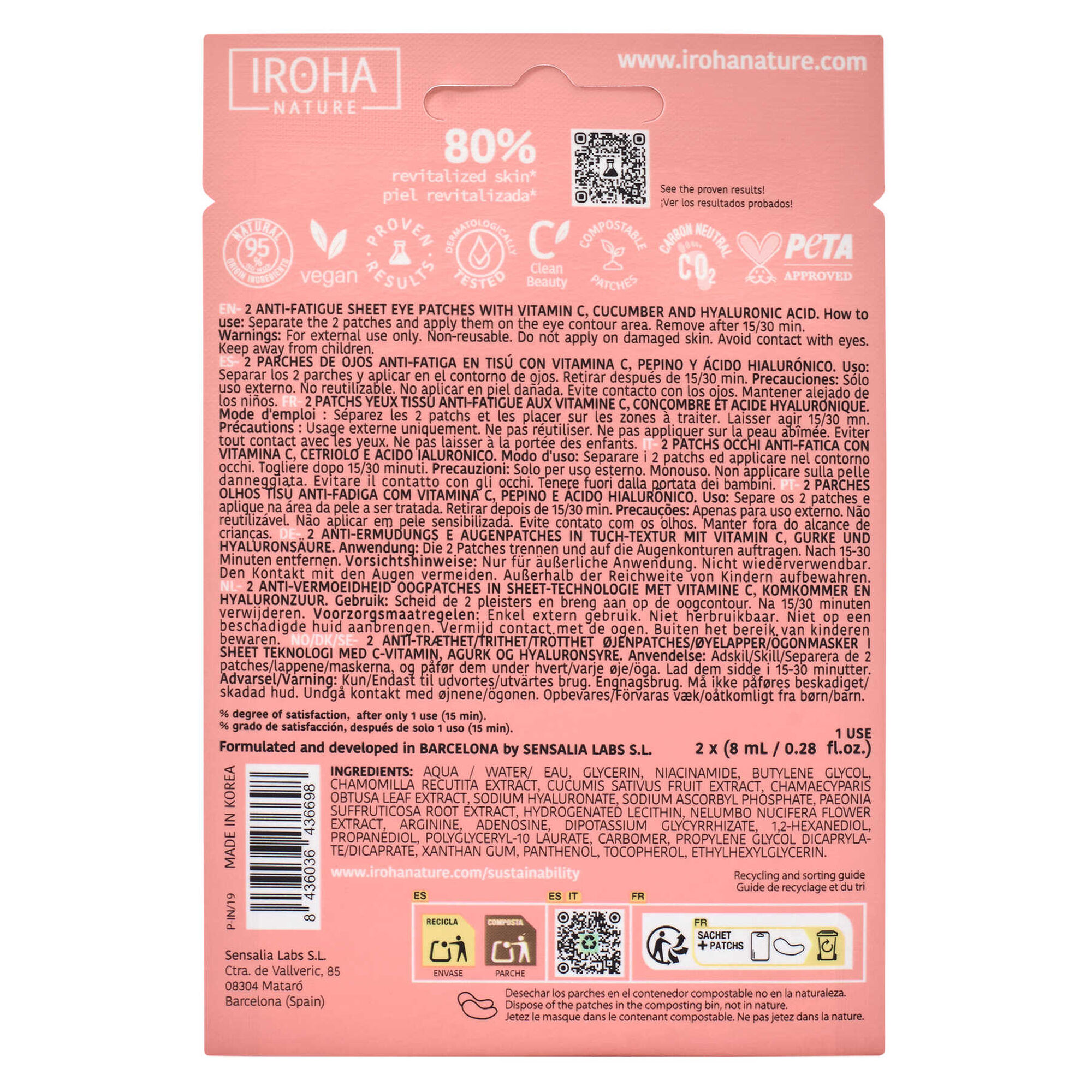 Estes patches ajudam a reduzir os sinais de fadiga, melhorando a aparência das olheiras e hidratando o contorno dos teus olhos.