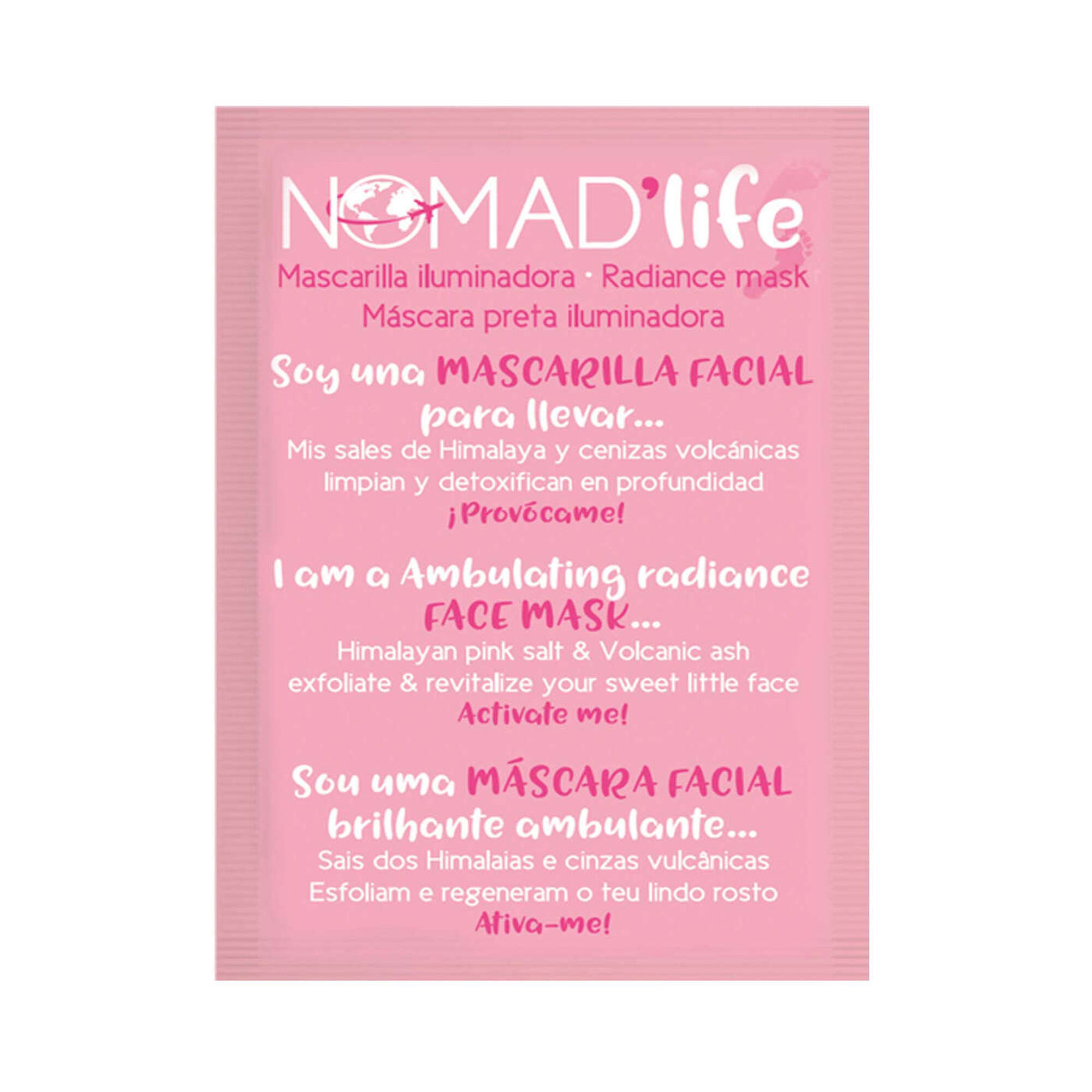 Ilumine a sua tez instantaneamente, dê um toque especial e desperte o seu rosto com esta máscara de brilho Nomad'life. As Cinzas Vulcânicas e o Sal dos Himalaias deslizam sobre a pele suavemente, deixando-a hidratada.