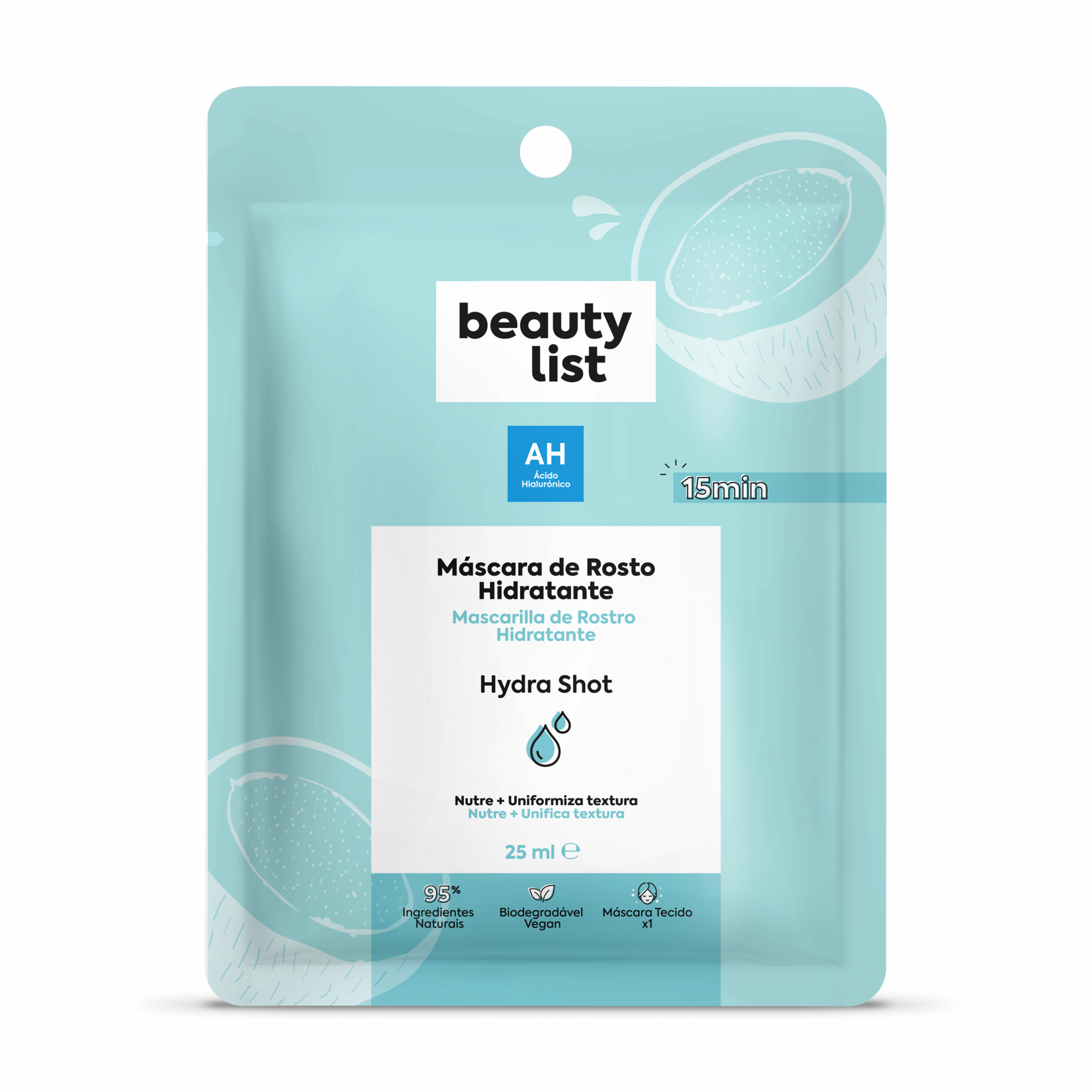 Esta máscara contém 95% de ingredientes naturais e é formulada com Ácido Hialurónico, Extrato de Coco, Alé Vera e enriquecida com os sistemas patenteados Synergene® e Lipobuty® para permitir que os ingredientes sejam sinérgicos entre si e aumentem a velocidade de absorção para obter melhores resultados. Para todos os tipos de pele.