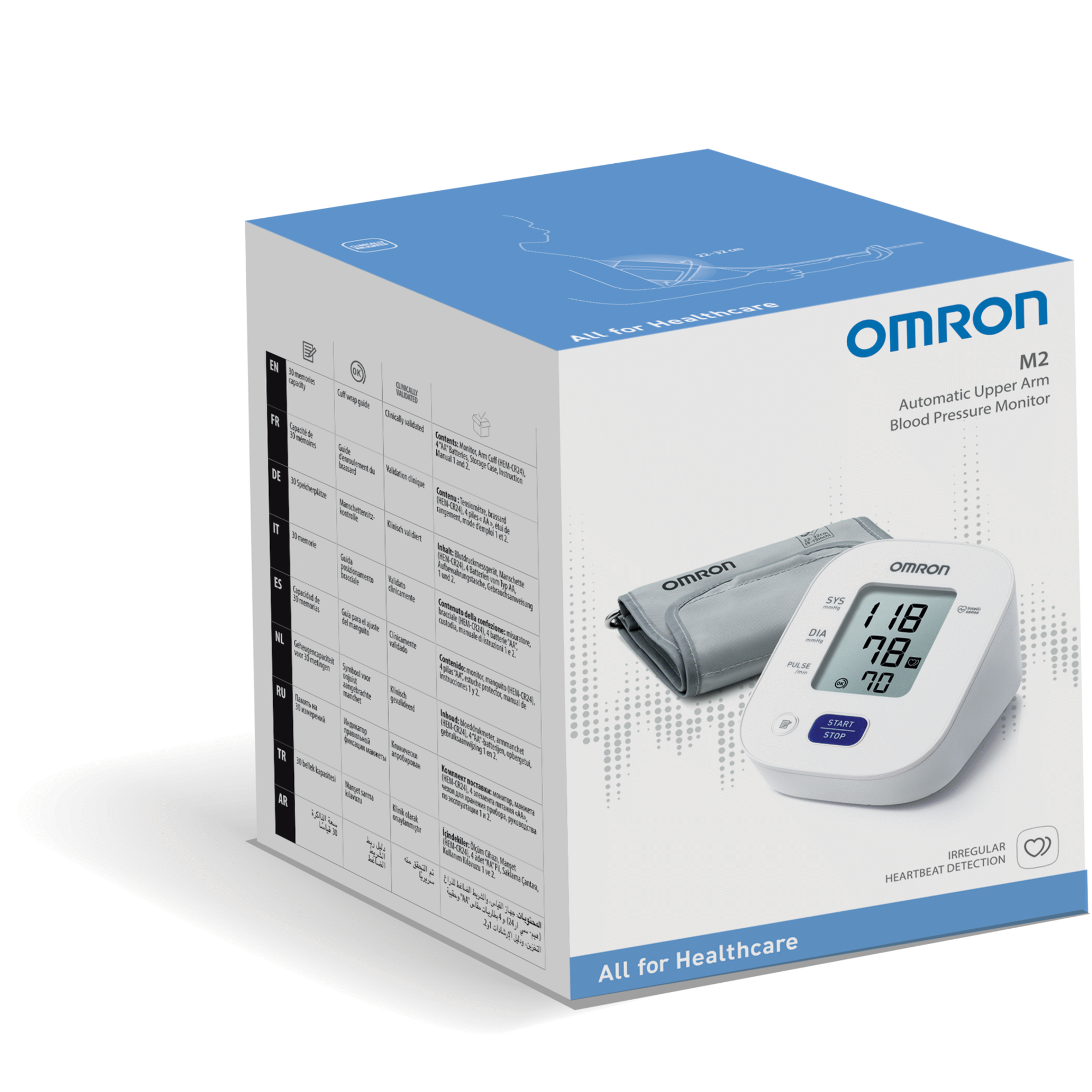 O M2 é um medidor de pressão arterial com tecnologia intellisense que permite medições rápidas e menos incomódas. Dispositivo Médico.