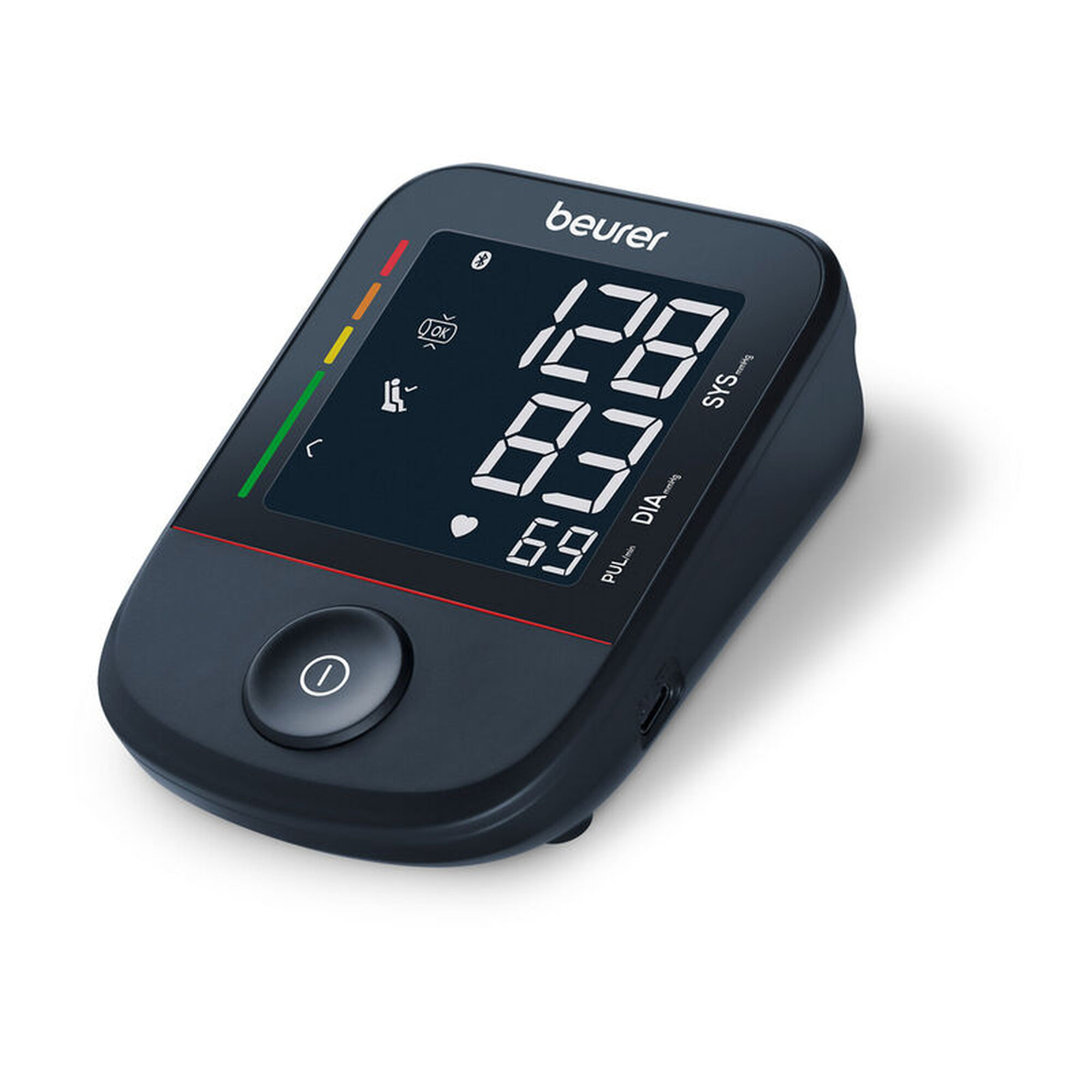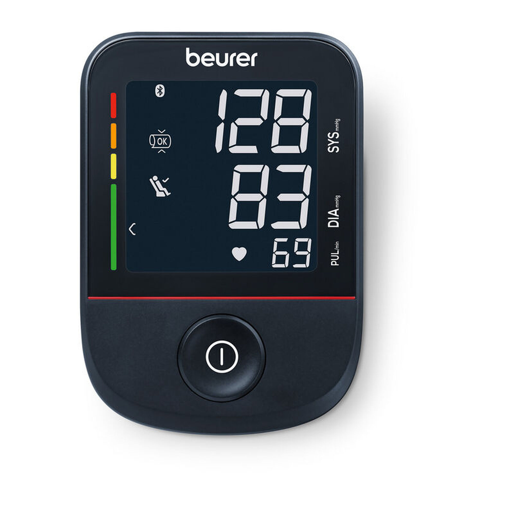 Conta com conexão Bluetooth, visor grande de fácil leitura e indicadores para descanso e posição adequada, além de um sistema de cores para avaliação de risco.