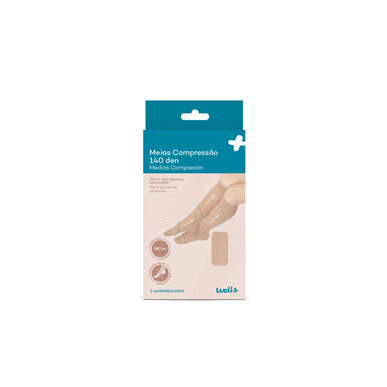 As Meias de Descanso Alívio e Prevenção Bege da Wells com compressão, são indicadas para a prevenção dos sintomas da insuficiência venosa.