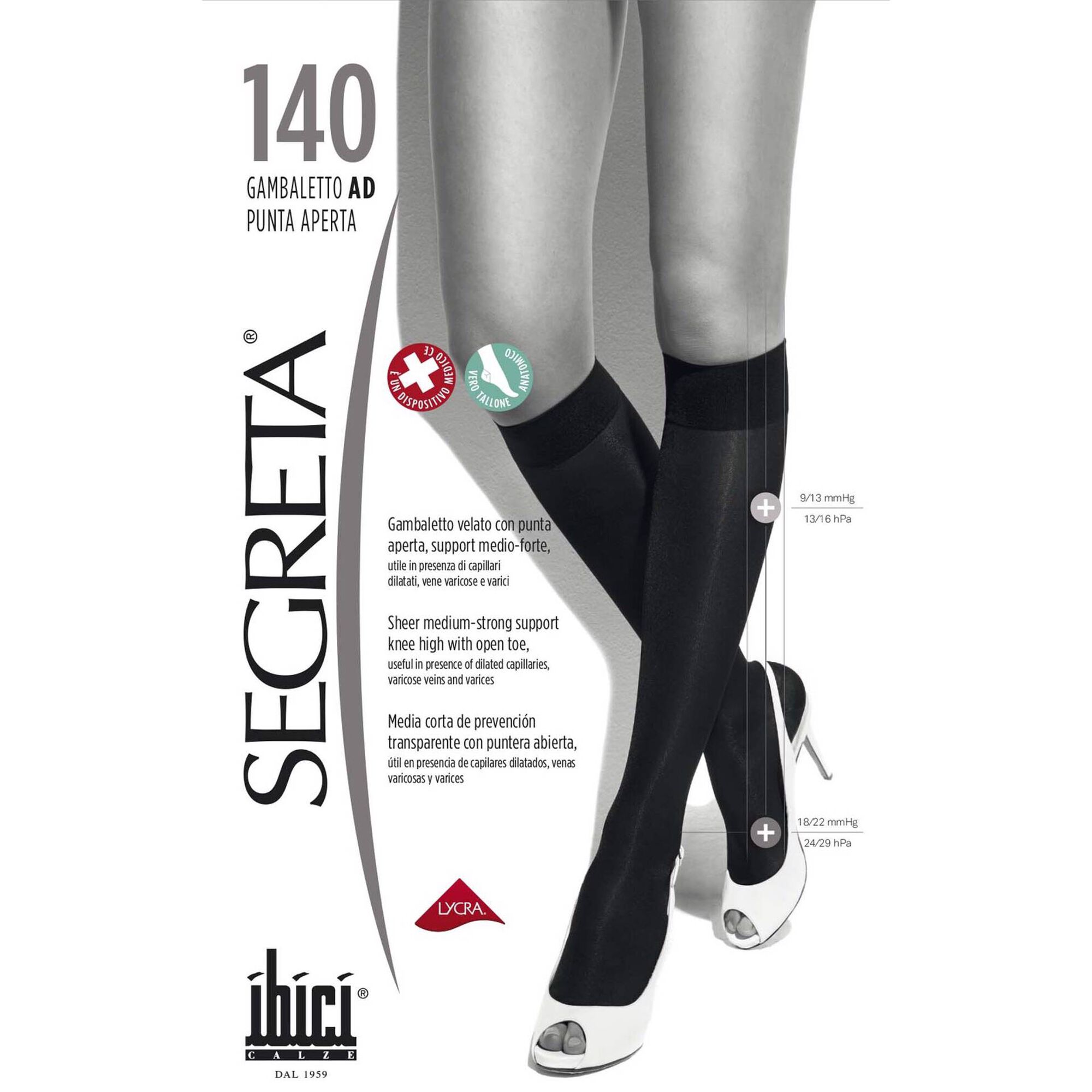 Meia de compressão até ao joelho (AD), de classe de compressão 140 den, indicada para as veias capilares dilatadas e para veias varicosas, inclusive durante a gravidez. Dispositivo Médico.