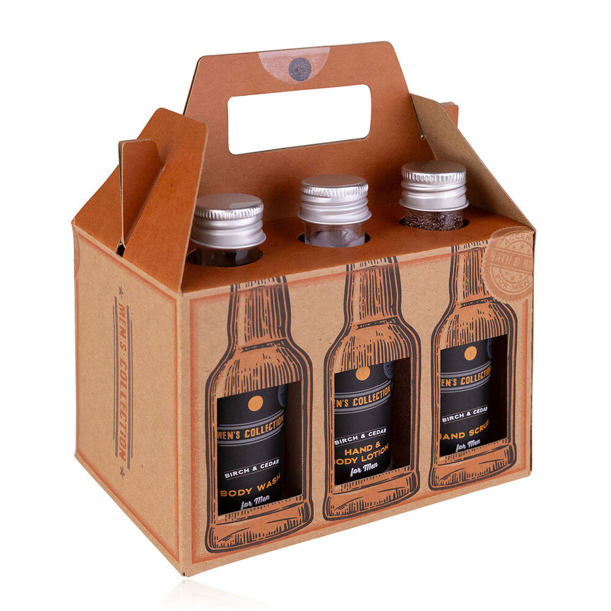 Apresentado em uma embalagem estilo caixa de cerveja artesanal, este kit inclui gel de banho, loção corporal, shampoo, after shave balm e scrub para mãos, todos com a fragrância marcante de Birch & Cedar, que combina frescor amadeirado com notas quentes e elegantes. Ideal para presentear ou para criar um ritual diário de cuidado masculino.