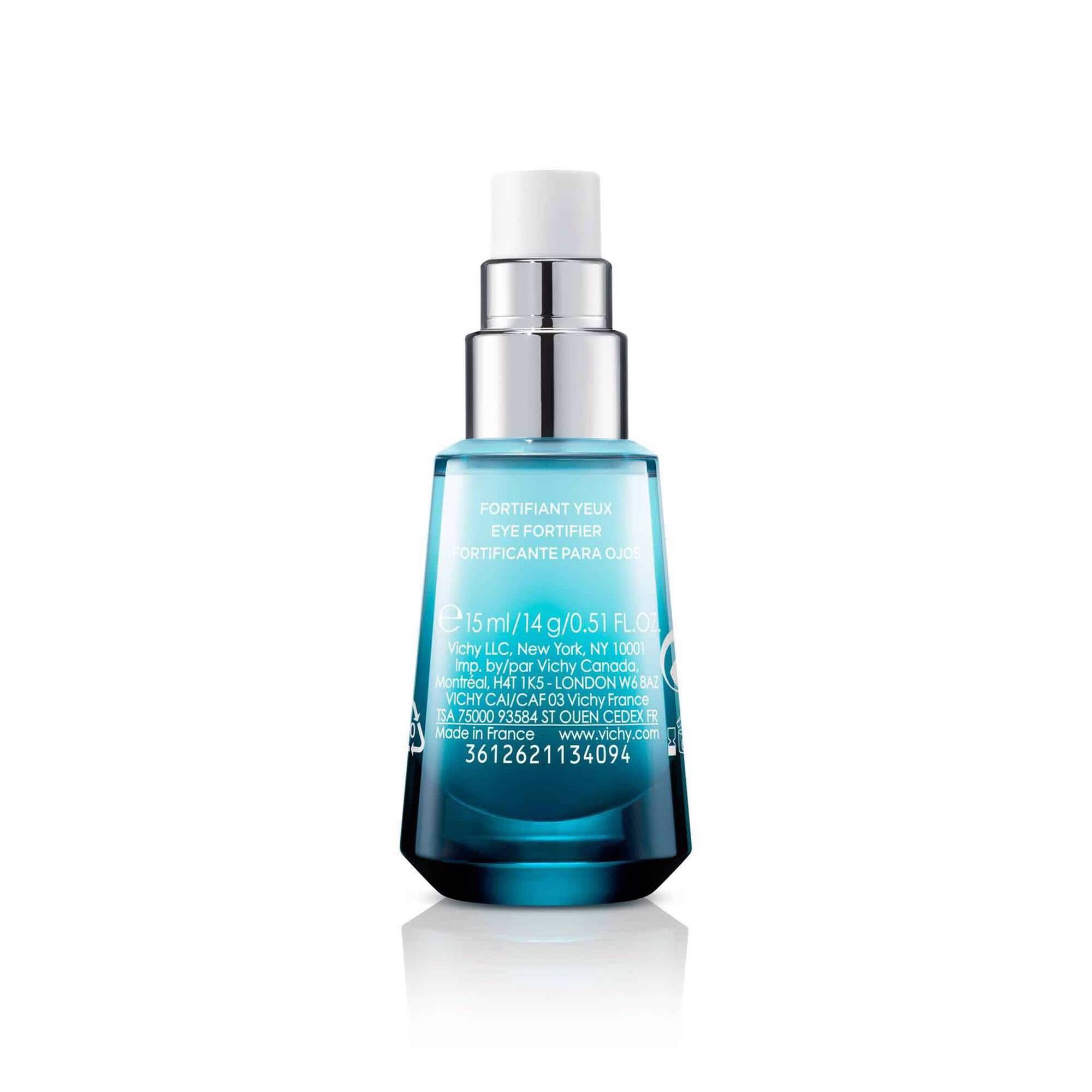 89% de Água Mineralizante Vichy com 15 minerais essenciais e Ácido Hialurónico de origem natural, agora com Cafeína revitalizante. Minéral 89 Olhos reforça a função barreira da pele na zona do contorno dos olhos, suaviza as linhas com hidratação 24 horas e reduz as olheiras para um olhar mais luminoso e forte.