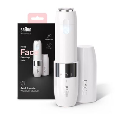 A Mini Depiladora Braun corta o pelo rente ao nível da pele, deixando o seu rosto suave, consistente e sem efeito pele de pêssego.
