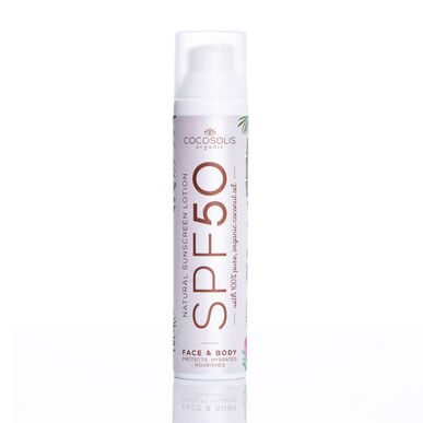 O protetor solar da Cocosolis com SPF50 tem uma textura em loção que oferece uma proteção solar natural. Protege dos raios UVA e UVB, com precioso óleo de coco.