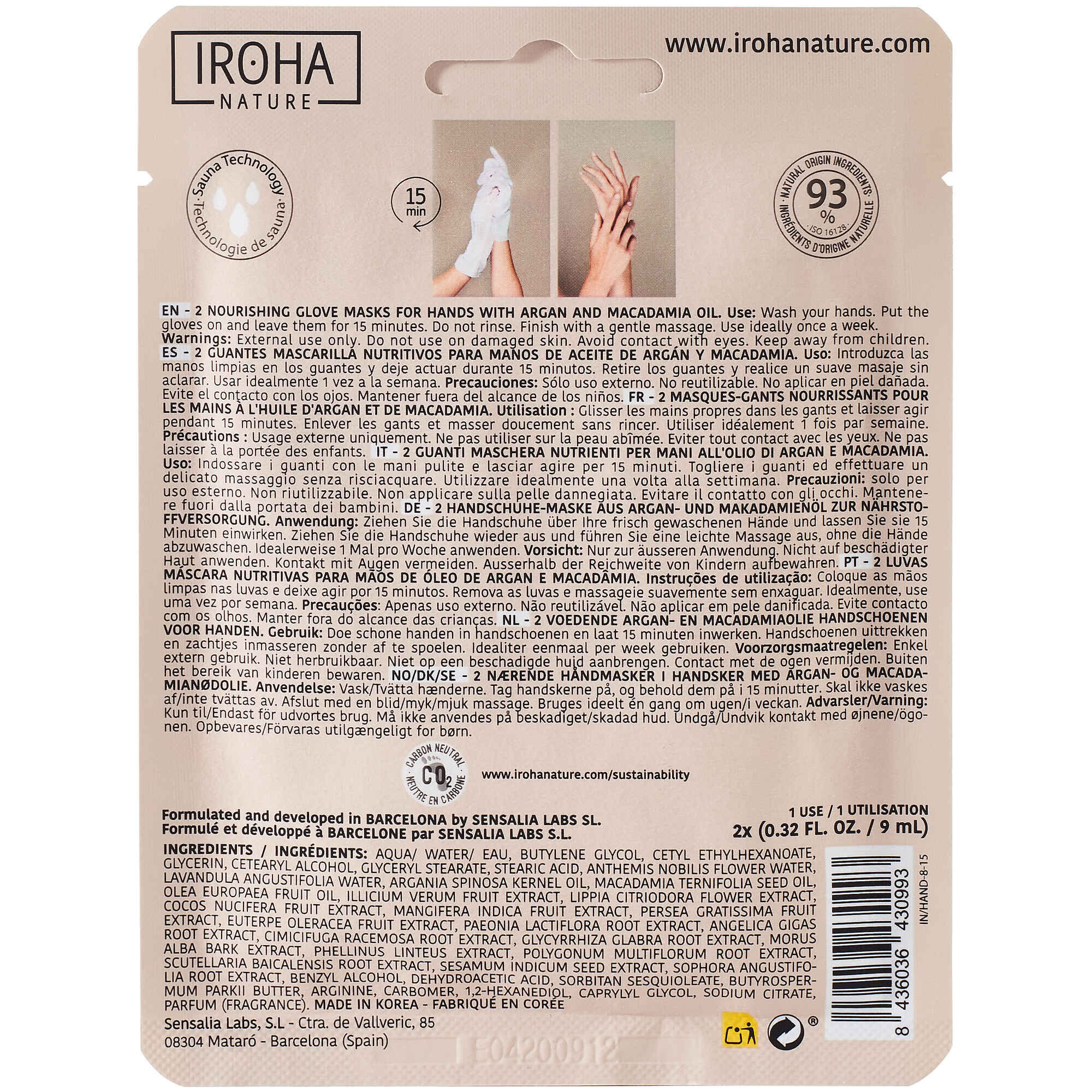 A máscara de mãos nutritiva Nourishing da Iroha Nature é um cuidado intensivo nutritivo e reparador para mãos secas.