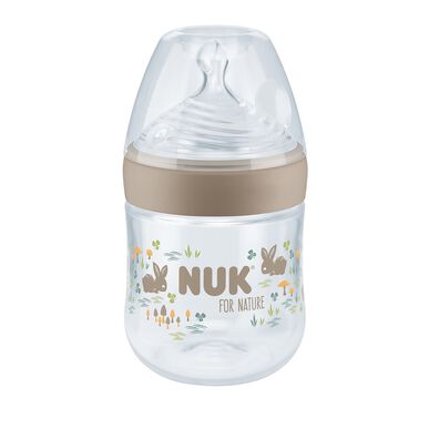 Com indicador de temperatura, livre de BPA, 150ml: tamanho S com 3 orfifícios. Pode ser combinado com todos os NUK for Nature e Acessórios NUK Nature Sense.