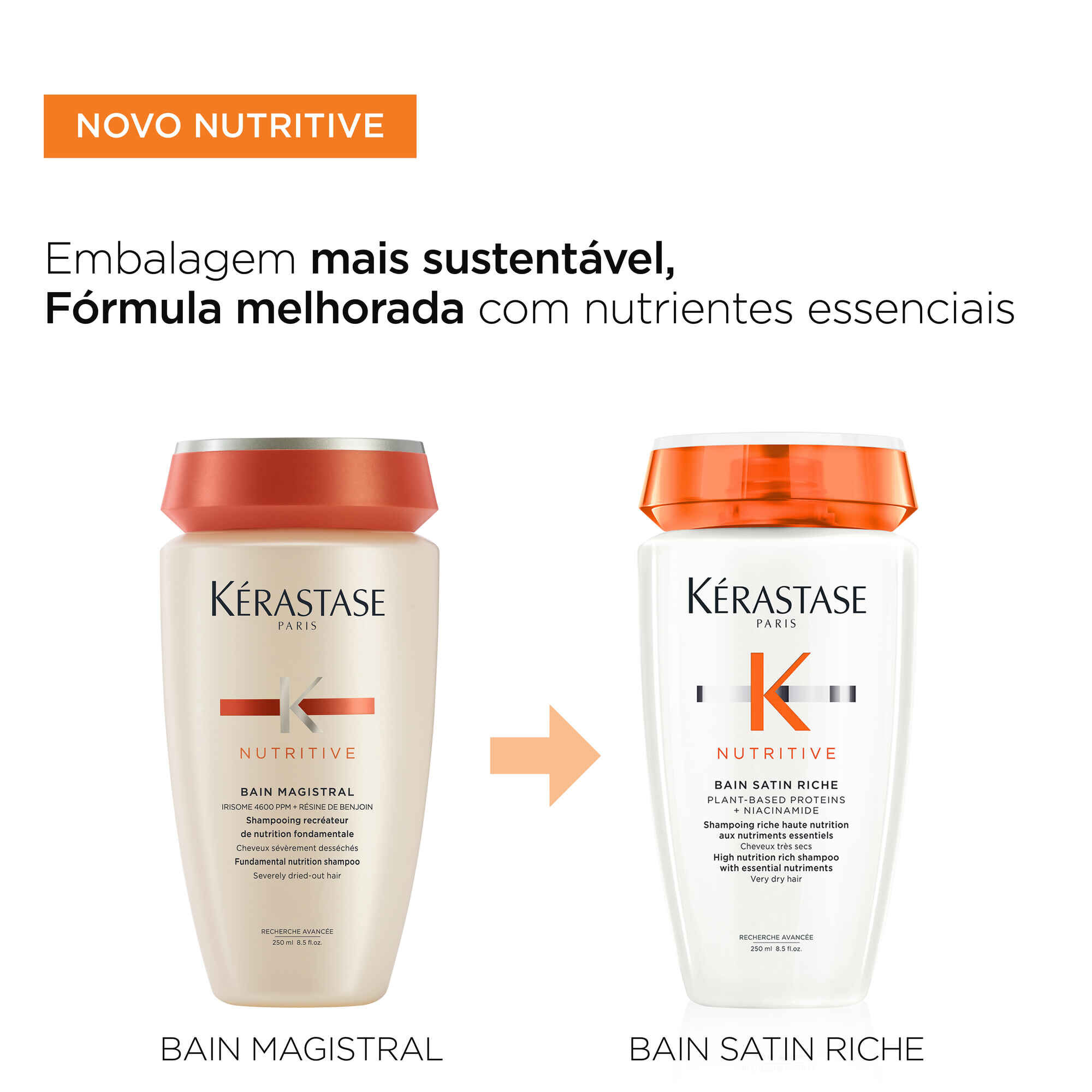 Nutritive Bain Satin Riche de Kérastase é um champô altamente nutritivo para cabelo muito seco. A sua fórmula combina polímeros antissecura para uma nutrição intensa e força, com nutrientes essenciais para nutrir e fortalecer o cabelo seco para um resultado leve. A fórmula altamente nutritiva limpa profundidamente e repara o cabelo seco enquanto repõe a hidratação.