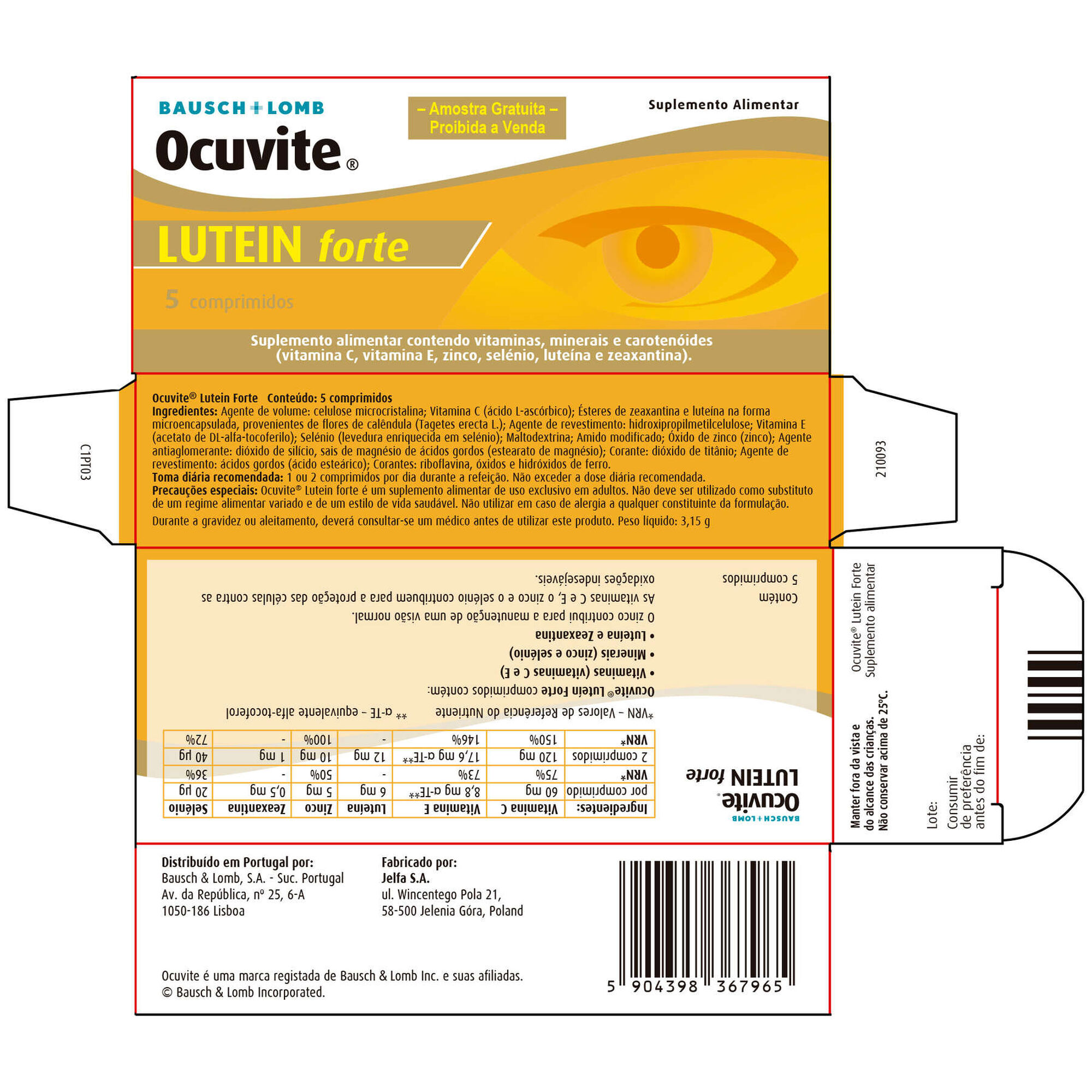 Ocuvite® Lutein é um suplemento alimentar à base de vitaminas, minerais, luteína e zeaxantina. Minerais, como Zinco e Selénio. O Zinco contribui para a manutenção da visão normal. Vitaminas, como a vitamina C e E. Luteina e Zeaxantina. A vitamina C, E, o Zinco e o Selénio contribuem para a proteção das células contra as oxidações indesejáveis.
