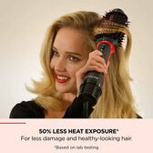 Graças ao seu desempenho melhorado, proporciona uma secagem profissional extra volumosa em metade do tempo** para uma secagem de salão 75% mais brilhante com 50% menos exposição ao calor***.