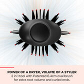 Mais volume com a sua cabeça oval amovível 30% mais pequena, que permite a criação de penteados desde a raiz, e maior versatilidade durante a criação de penteados, tornando-a ideal para qualquer comprimento de cabelo.