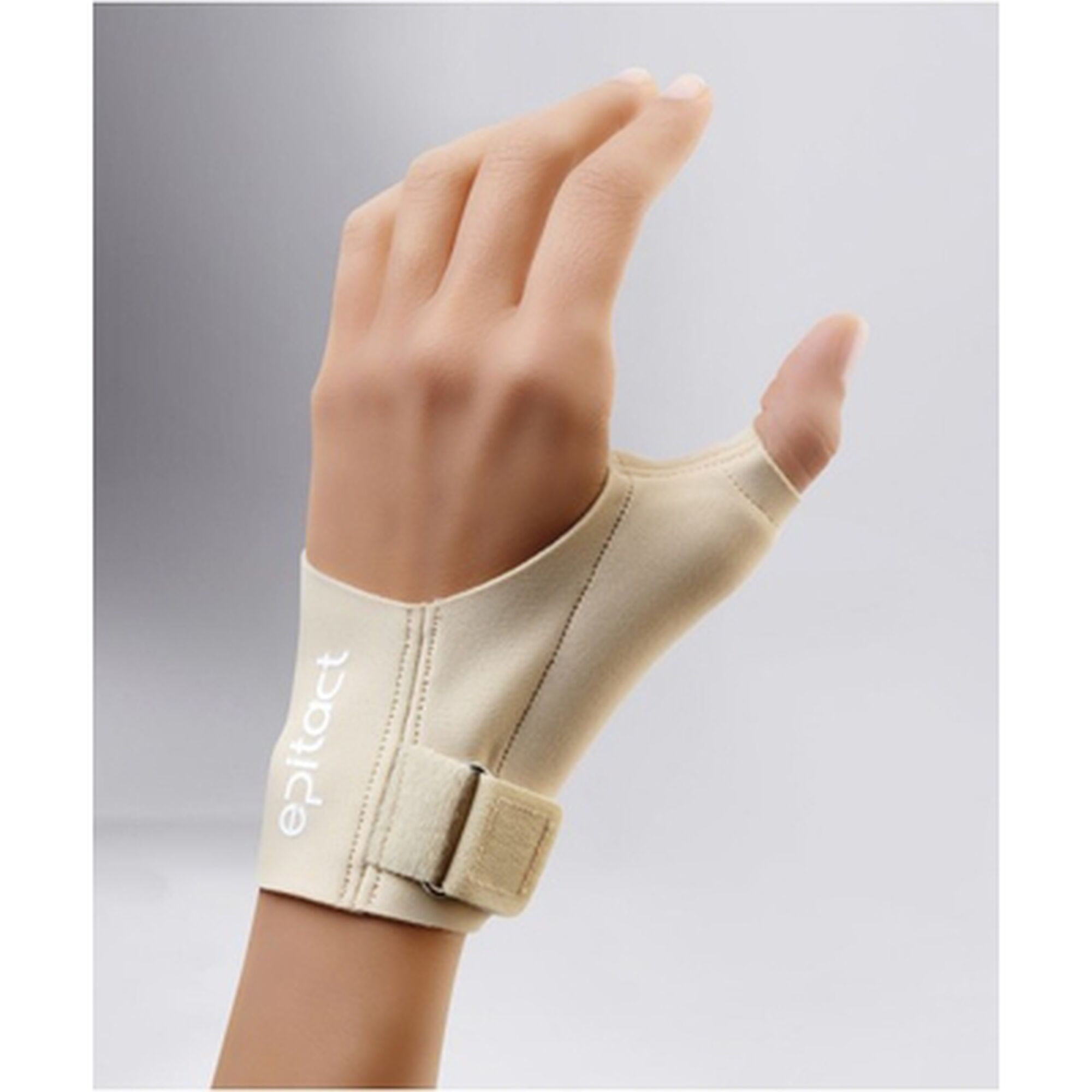 A órtese EPITACT® mantém o polegar em posição de repouso, abrindo a comissura articulação trapézio-metacarpiana e aliviar a dor. Especificidades: A órtese rígida torna-se flexível ao mergulhar em água quente. Quando uma órtese personalizada (à sua medida).