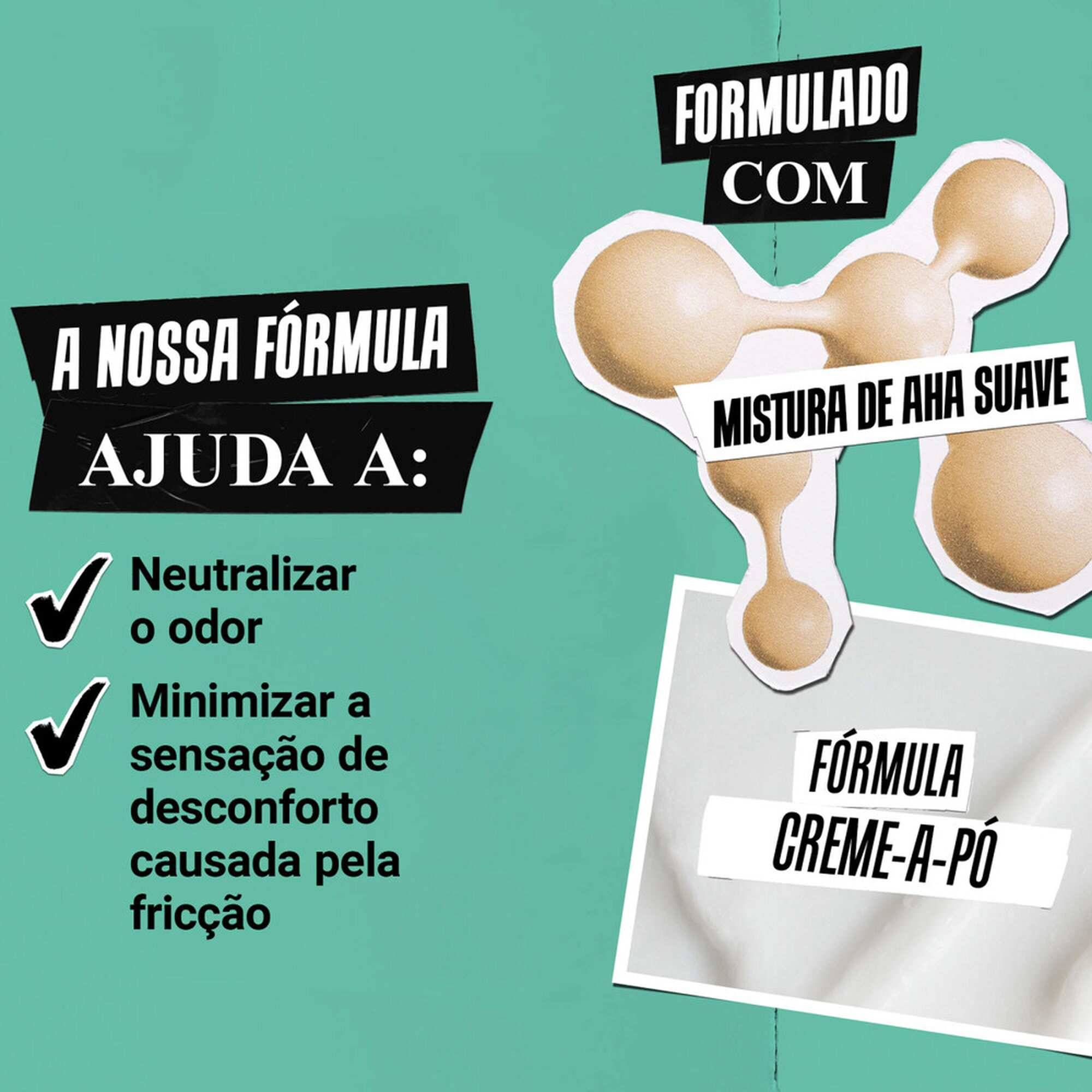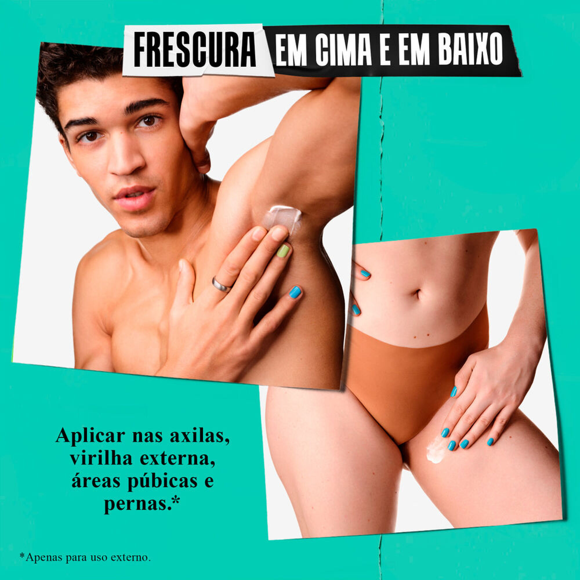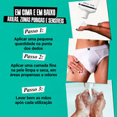 Aplicar nas axilas, virilha externa, áreas púbicas e pernas*.