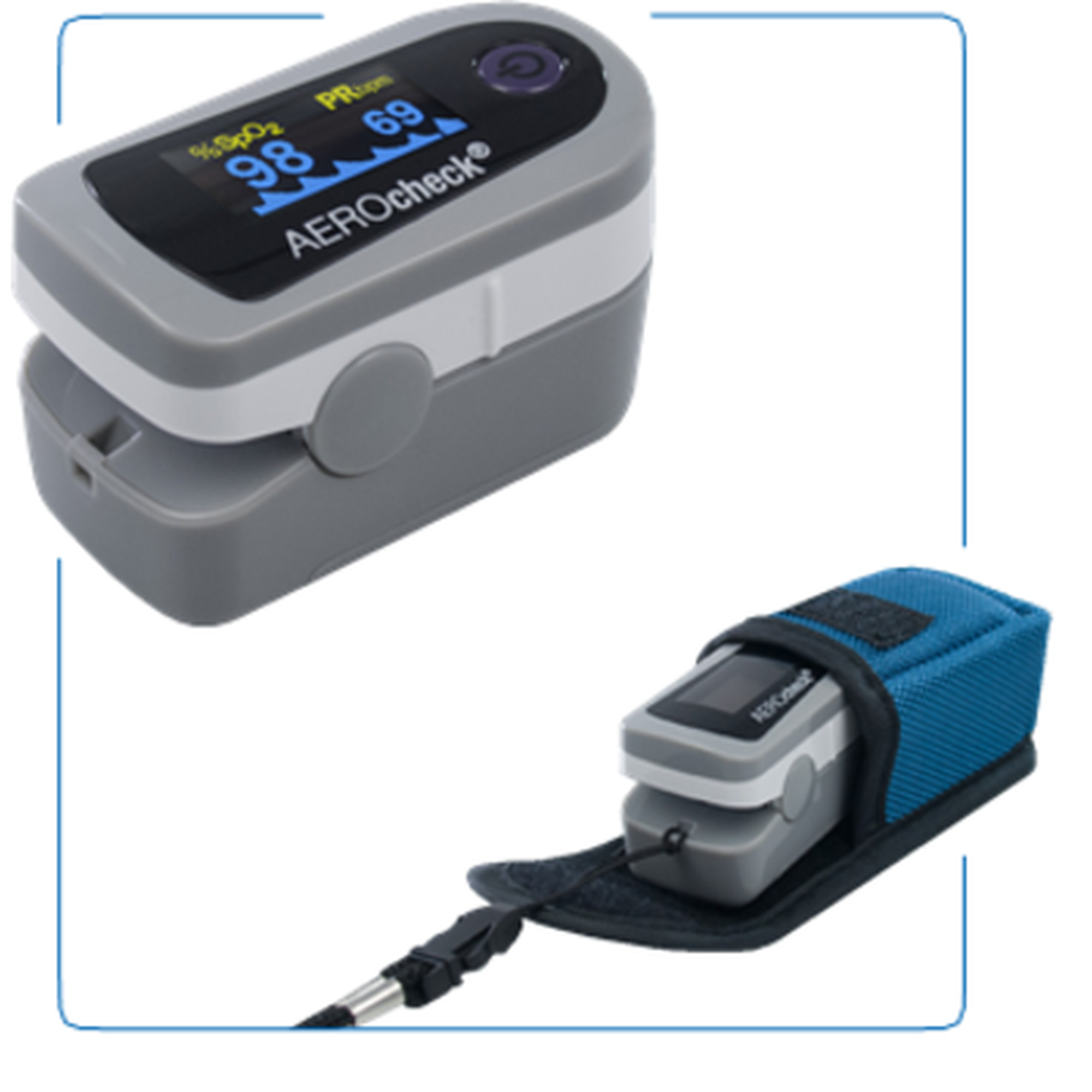 Dispositivo portátil que permite determinar a percentagem de saturação de oxigénio da hemoglobina arterial e a frequência cardíaca. Medição simples e indolor. Dispositivo pequeno e portátil. Dispositivo Médico.