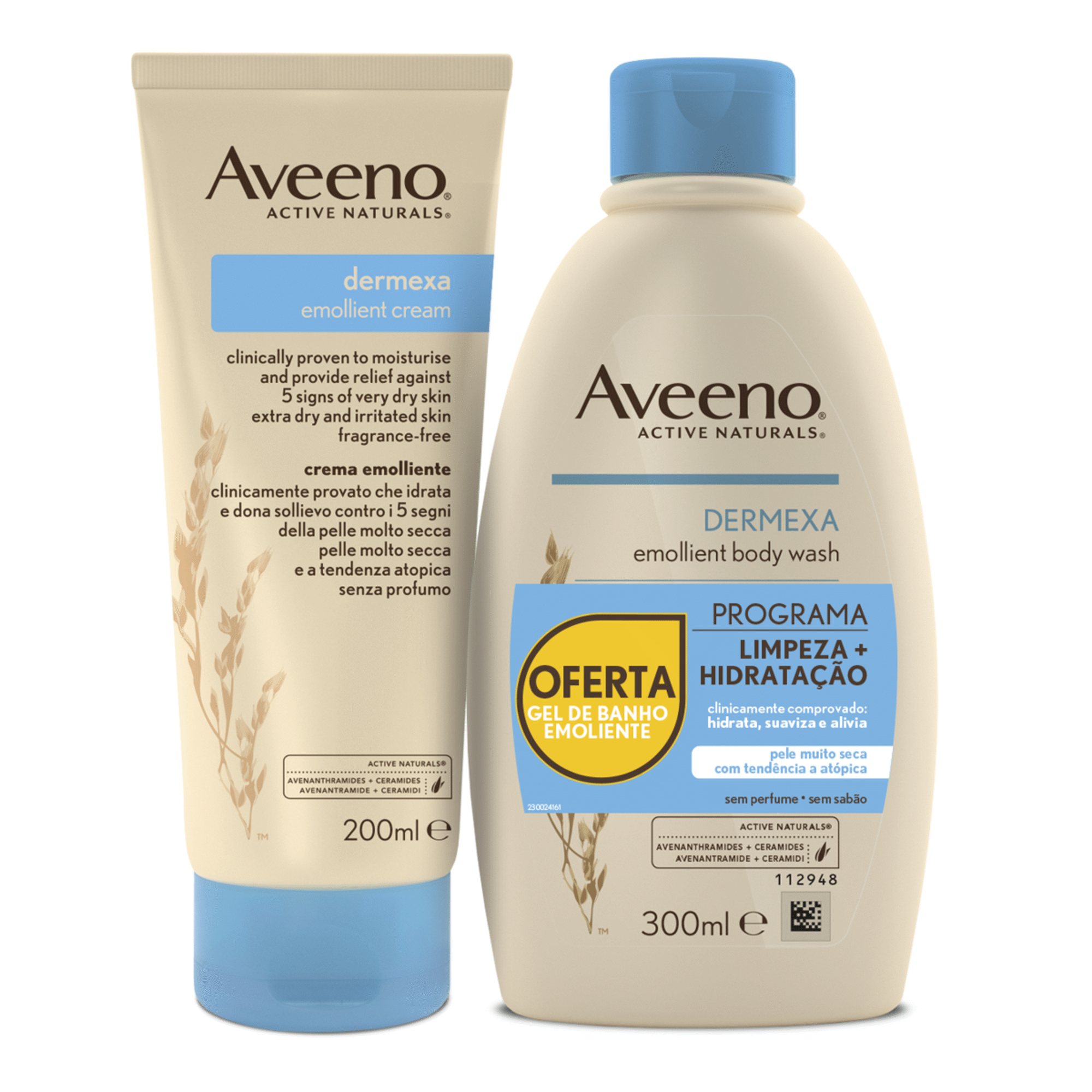 Aveeno DERMEXA Creme suavizante Emoliente 200ml + Gel de Banho Emoliente 300ml