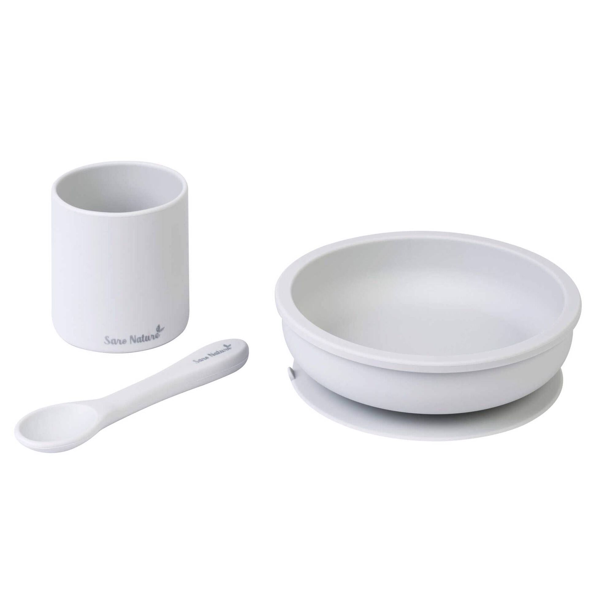 Pack composto por: Prato com ventosa + Colher ergonómica + Copo