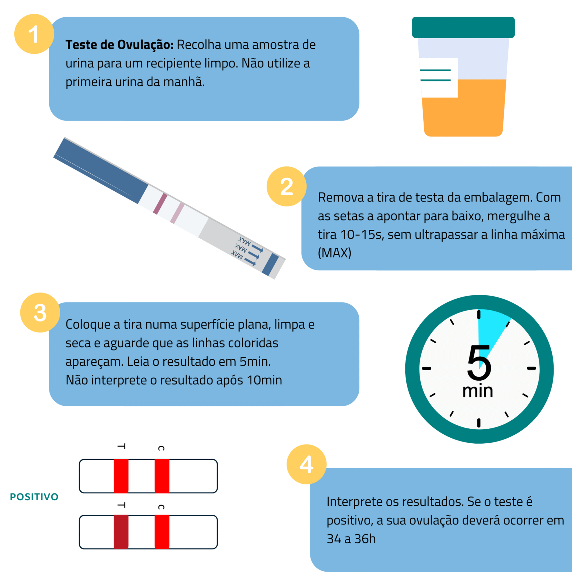 4- Interprete os resultados. Se o teste é positivo, a sua ovulação deverá ocorrer em 34 a 36h