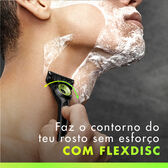 A tecnologia FlexDisc 2D contorna o rosto para garantir conforto e contacto em cada passagem. Com 5 das melhores lâminas da Gillette* (*lâminas também disponíveis noutros produtos Gillette), esta máquina de barbear foi concebida para um barbear rápido e fácil. Inclui ainda um suporte magnético.