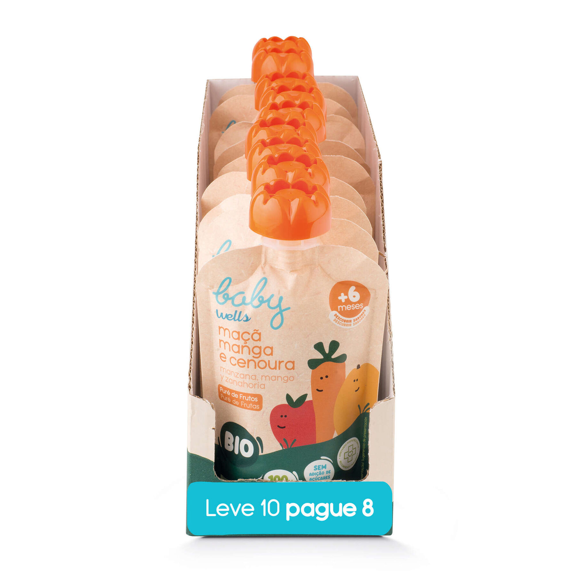 Puré de frutas biológico, cuidadosamente desenvolvido para o seu bebé. 100% fruta e vegetais, sem adição de açúcares e isento de glúten. Aprovado por nutricionistas e recomendado por mães.