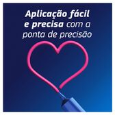 A aplicação é simples e precisa graças ao bocal normal, permitindo distribuir o produto em tiras finas. A fórmula sem aroma não altera o sabor dos alimentos, sendo adequada tanto para próteses completas como parciais.
