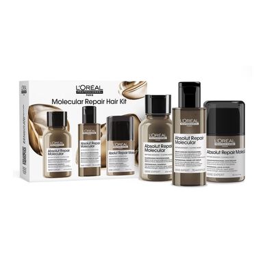 Coffret de minis Absolut Repair Molecular, com o Champô, sérum e máscara leave-in Absolut Repair Molecular.