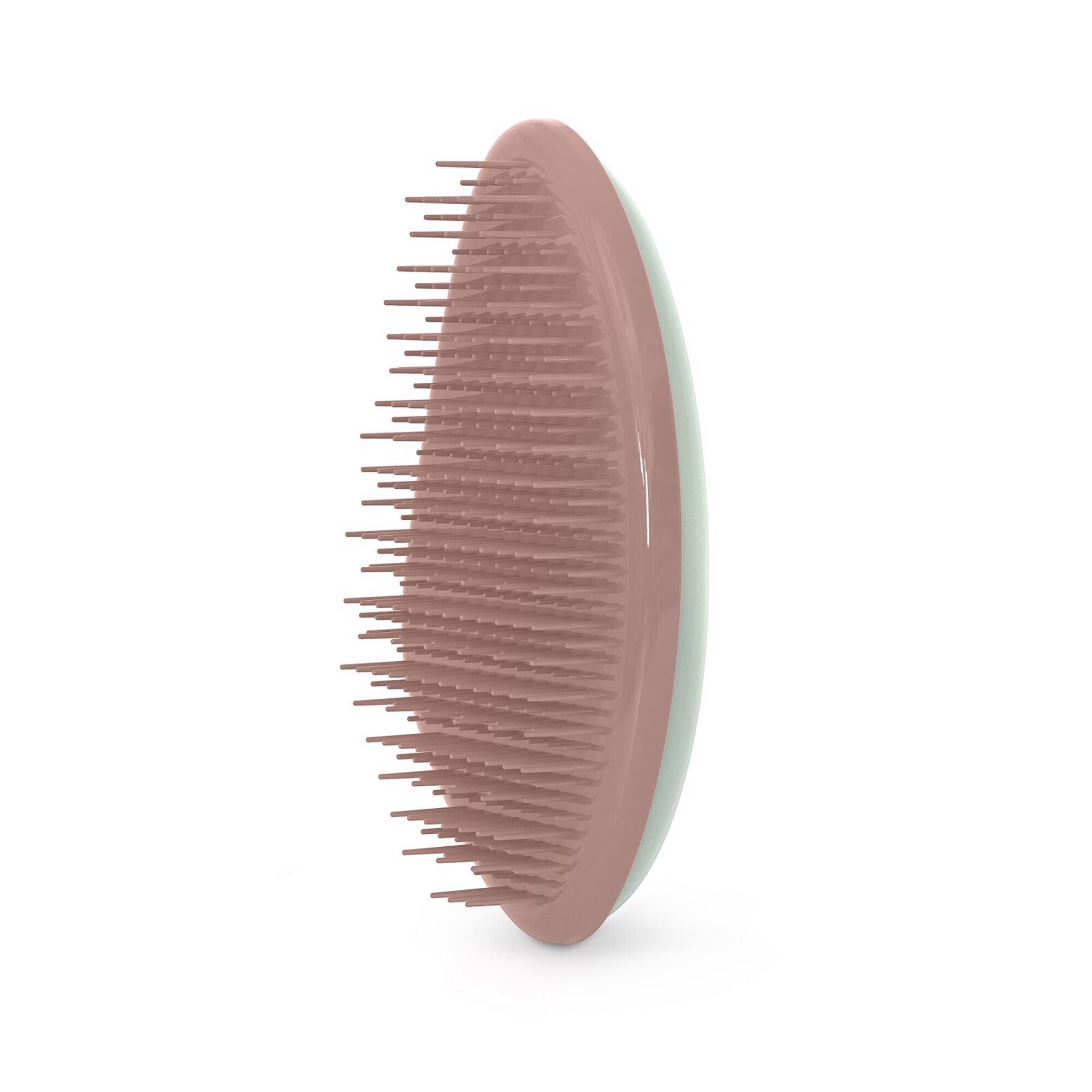 A escova desembaraçadora possui cerdas de gel flexíveis e é indicada para todos os tipos de cabelo.