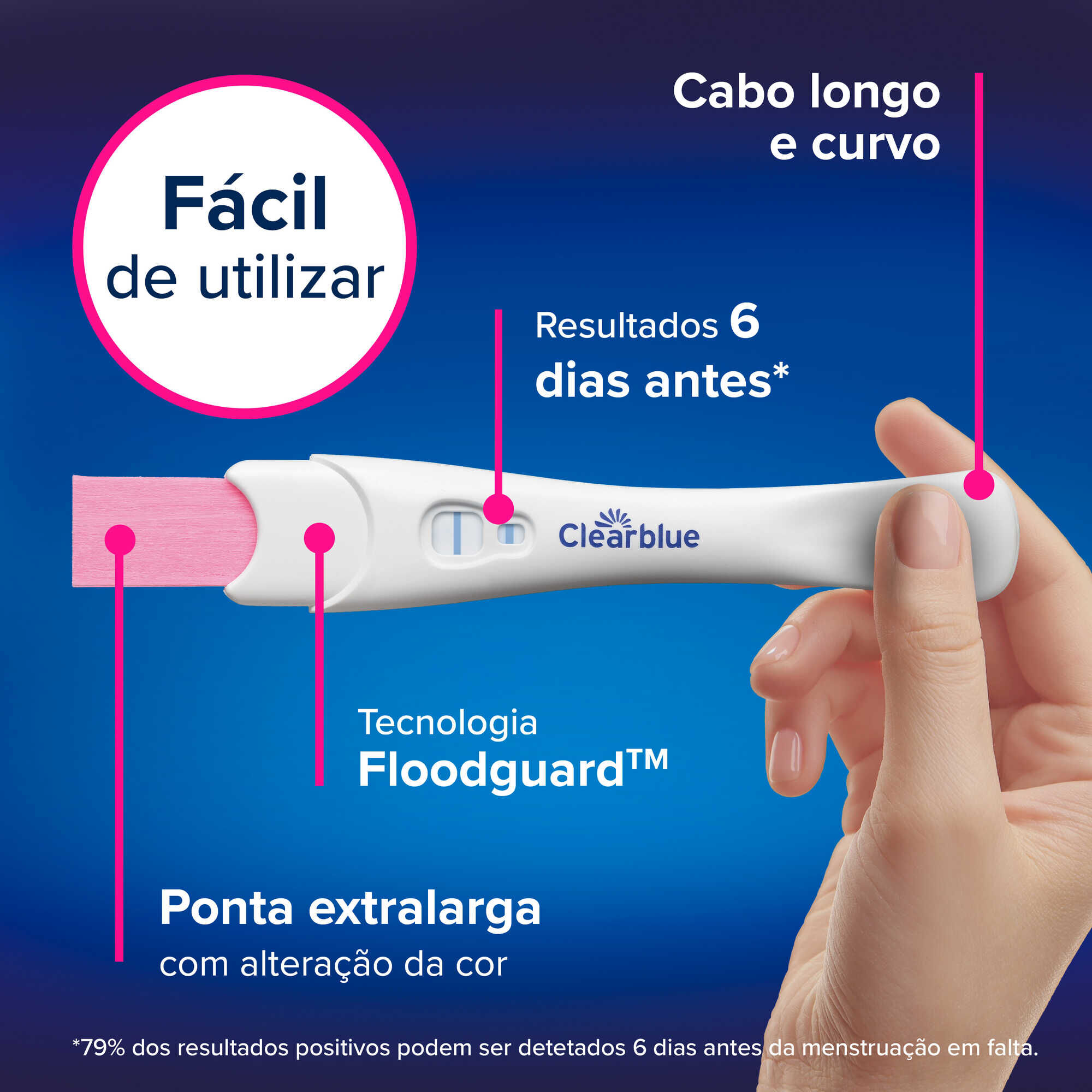 Clearblue é um dispositivo médico para diagnóstico in-vitro. Leia cuidadosamente a rotulagem e as instruções antes de utilizar.