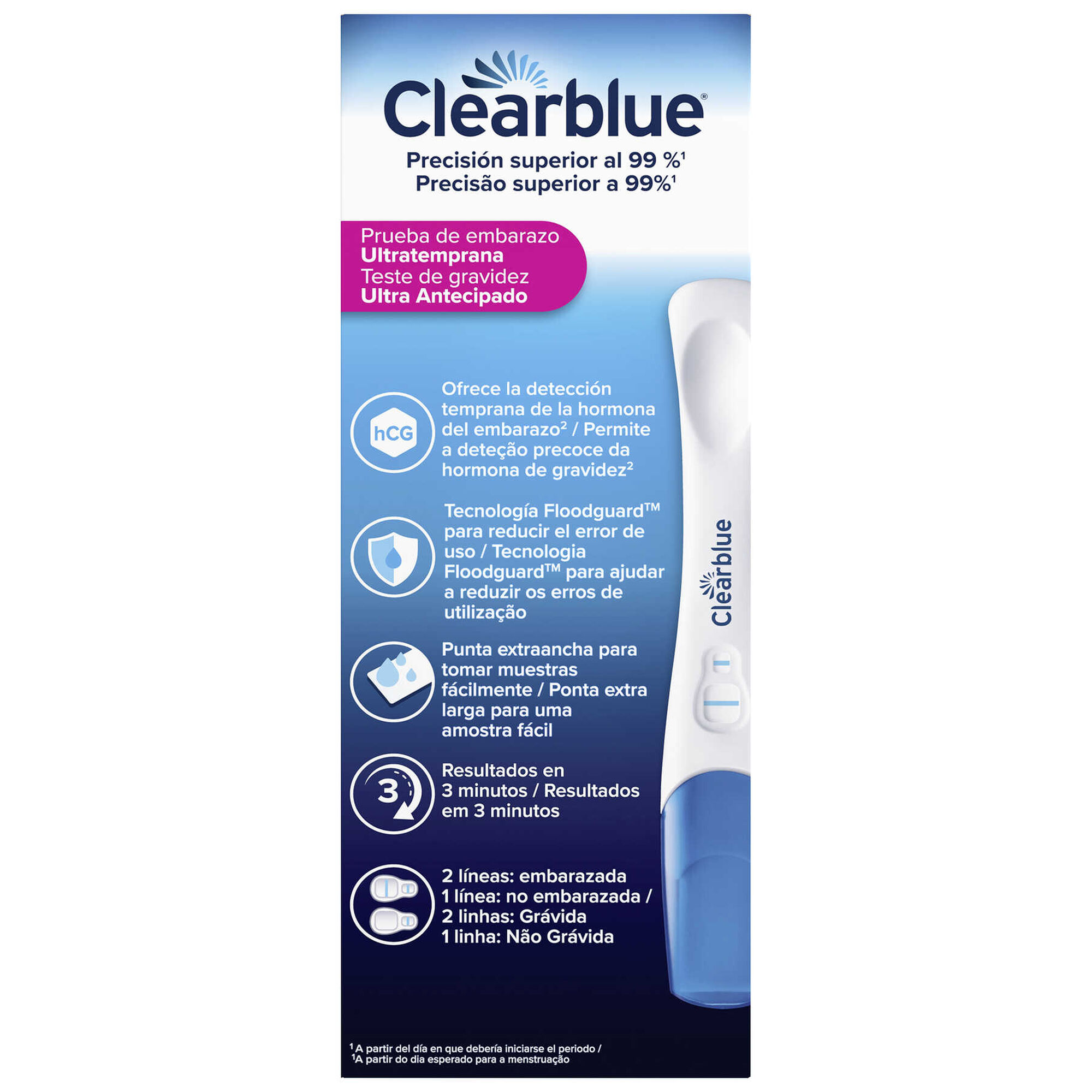 É um teste de fácil utilização que detecta uma hormona (hCG) na urina, que auxilia a confirmação da gravidez. Este oferece mais de 99% de precisão a partir do dia previsto para o início da menstruação e pode ser utilizado 6 dias antes do dia em que é suposto ter início a menstruação (que é 5 dias antes do início esperado da menstruação).