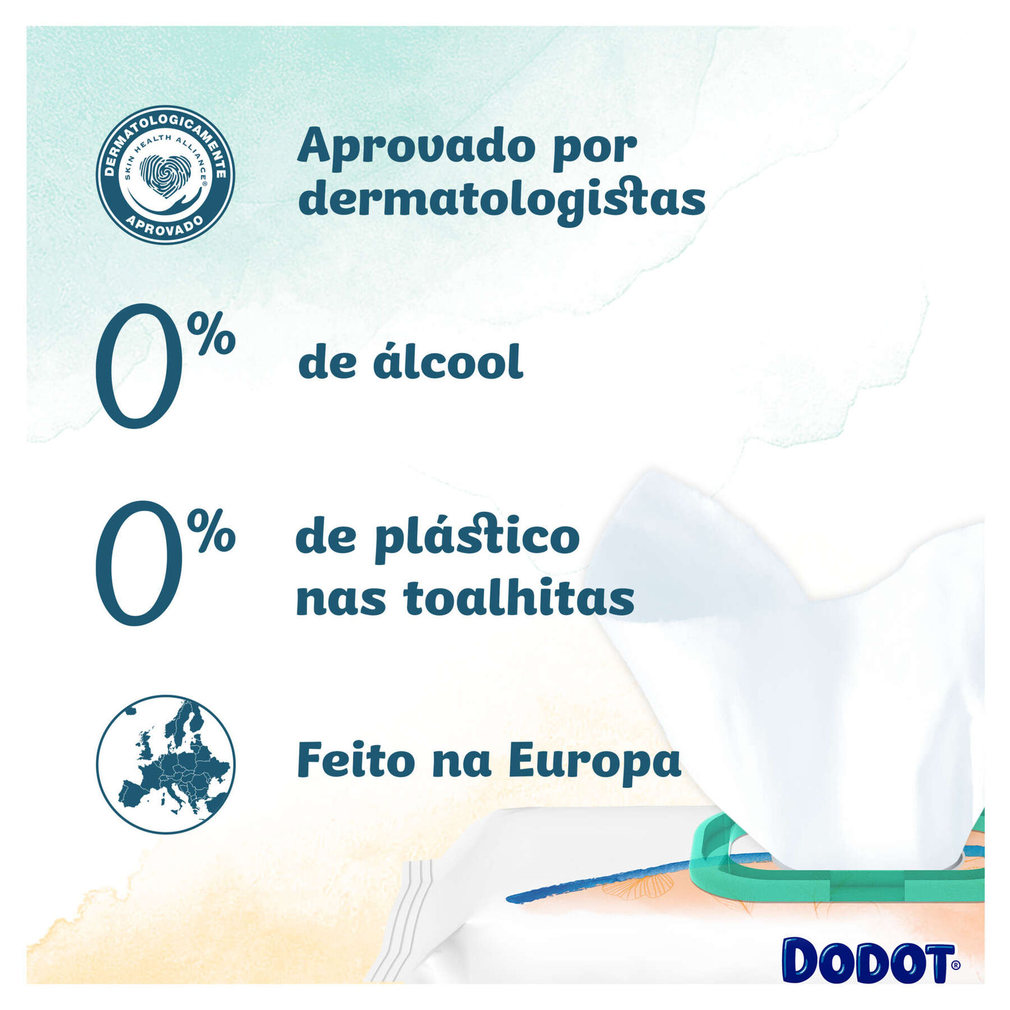 As toalhitas Dodot Pure Cuida e Protege são mais suaves do que o algodão e a água. Graças à sua fórmula única, ajudam a restabelecer o pH natural da pele, protegendo-a de irritações.