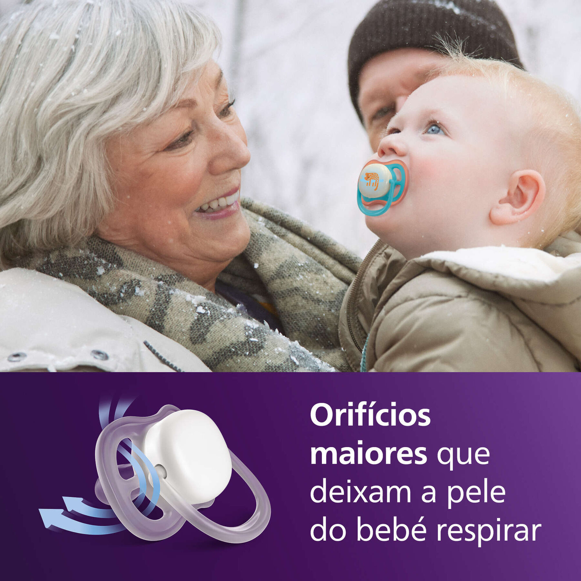 Calmante e respirável com orifícios amplos. 9 em cada 10 pais concordam: as chupetas Philips Avent Ultra Air são confortáveis para o meu bebé.