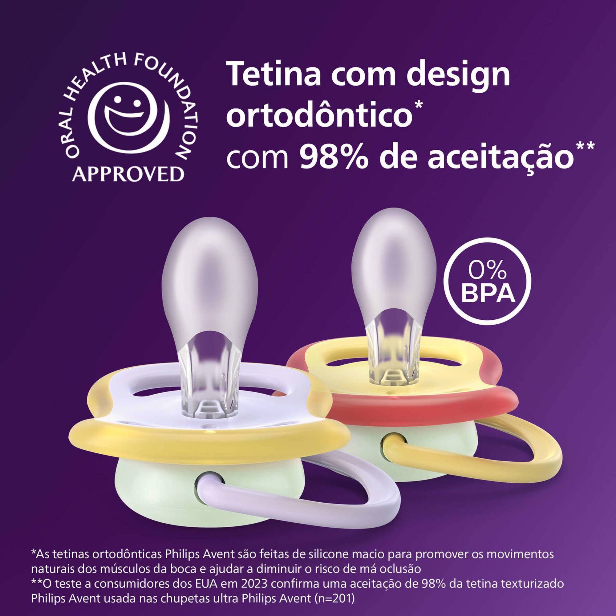 Calmante e respirável com orifícios amplos. 9 em cada 10 pais concordam: as chupetas Philips Avent Ultra Air são confortáveis para o meu bebé.